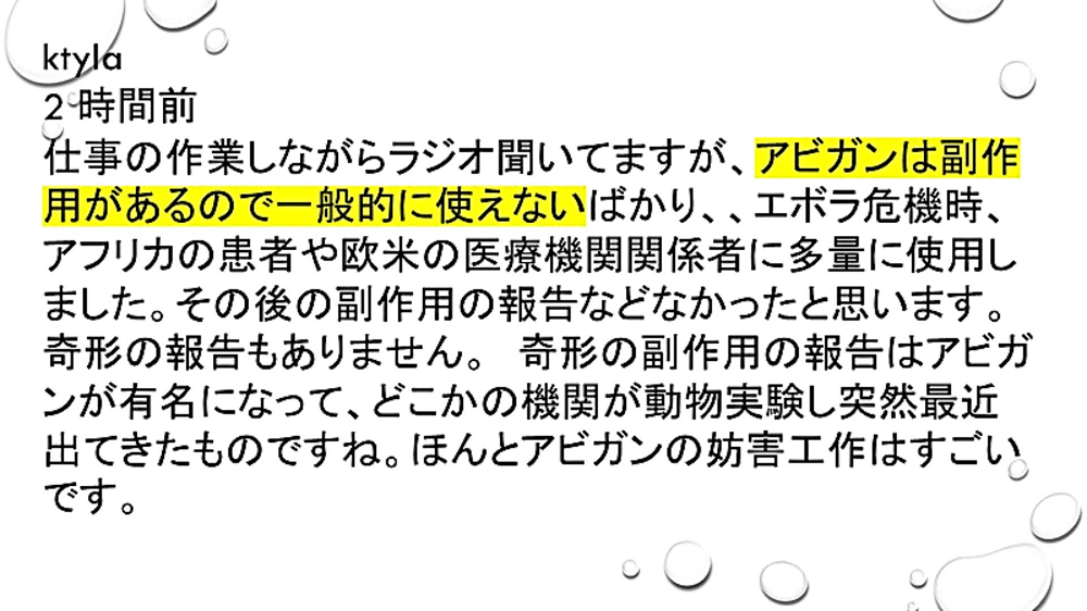 『アビガン』を望む世界の声は封殺できない!」 |