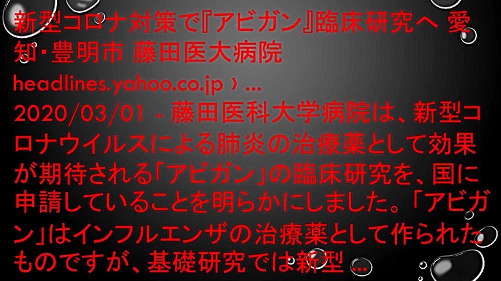 アビガンが効く!』TV番組動画が削除された!」 |