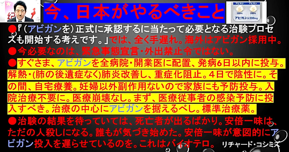なったら治療薬はアビガン錠」 |