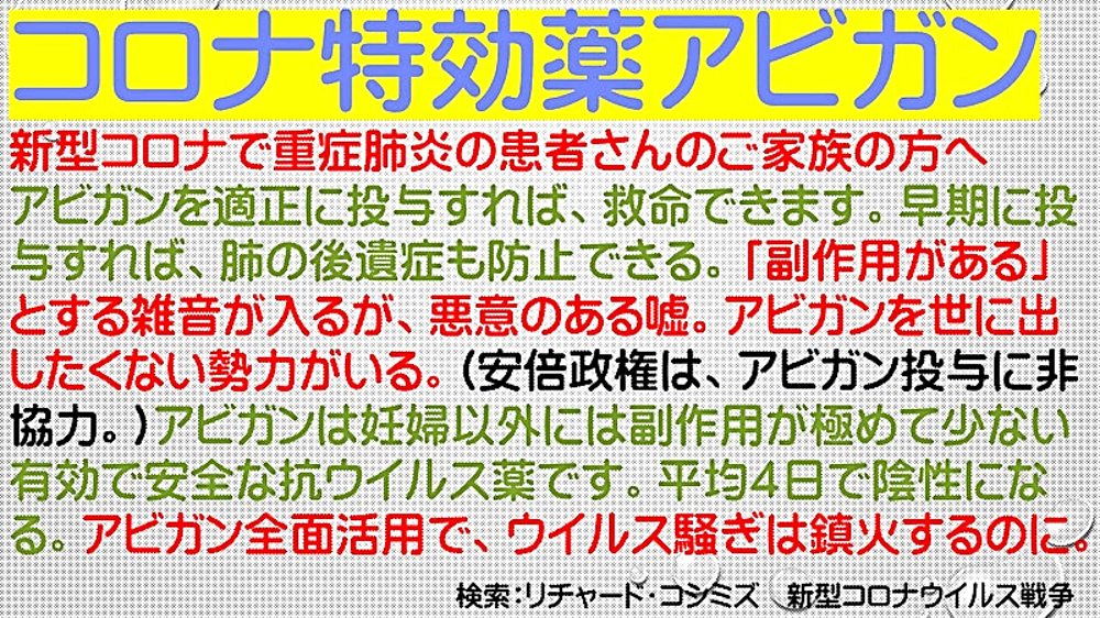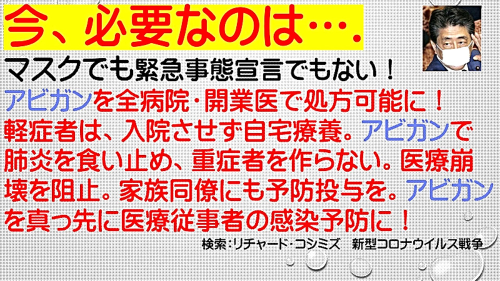 妨害・暴れても、『アビガン』微動だにせず! 」 |