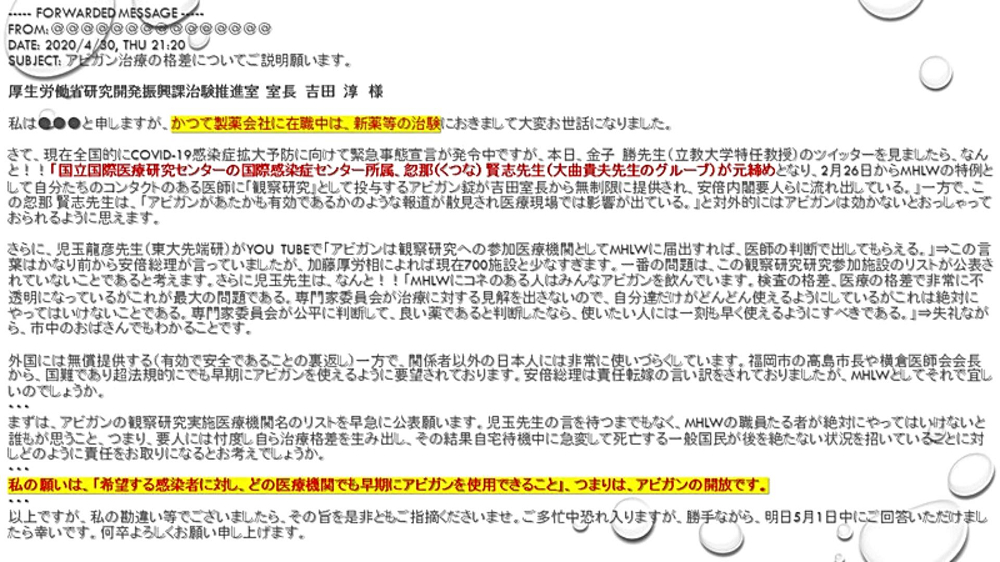 『アビガンを闇に葬り去る』工作に動き出した」 |