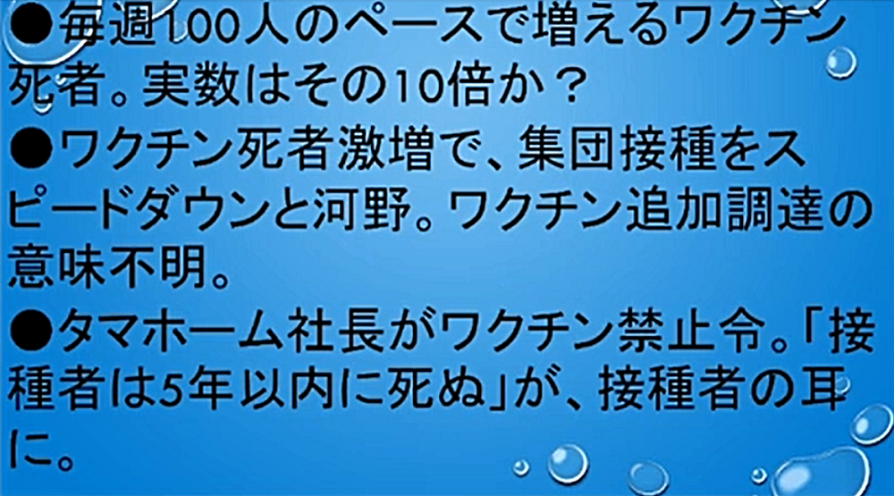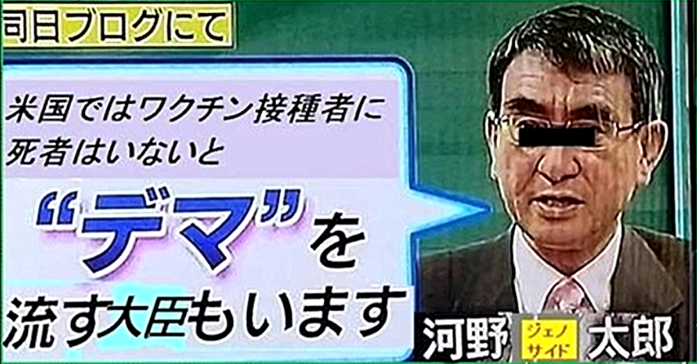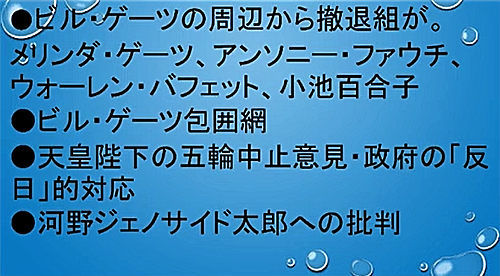◆有害無益馬鹿ワクチン ◆立憲、枝野さん、さっさと気が付いてください。立憲支持層の大半は、反ワクチンです。今、反ワクチンを立憲が唱えれば、選挙で一気に支持率が上がります。政権奪取も見えてくる。国民の大半はワクチンが大嫌いです。仕方なく打つのです。 ◆経団連さん、菅一味に迎合して職域接種などに同調した結果、死屍累々。今後どうなるか、薄々分かってきましたか?今さら、五輪反対姿勢を出したところで、社員の命は返ってきませんよ。ということで、河野デマ太郎が接種を減速。 ◆WHOバイオテロ組織の長で、ビル・ゲイツワクチン大王の奴隷のテドロスが五輪に来日。五輪テロの打ち合わせですか。 |