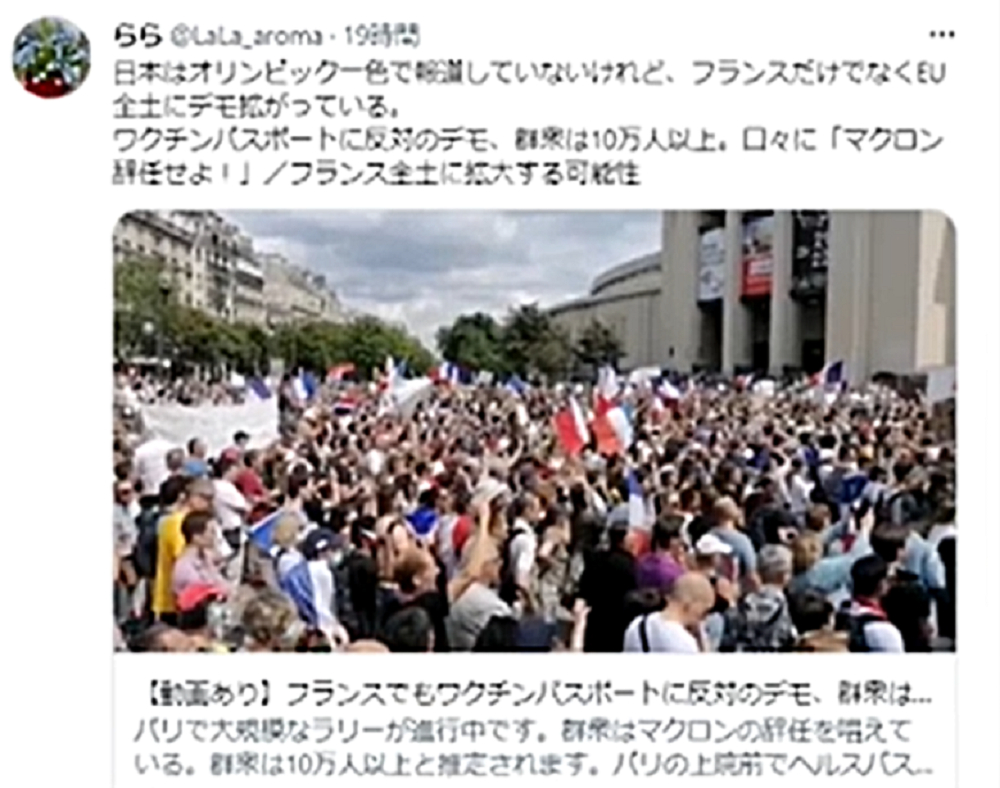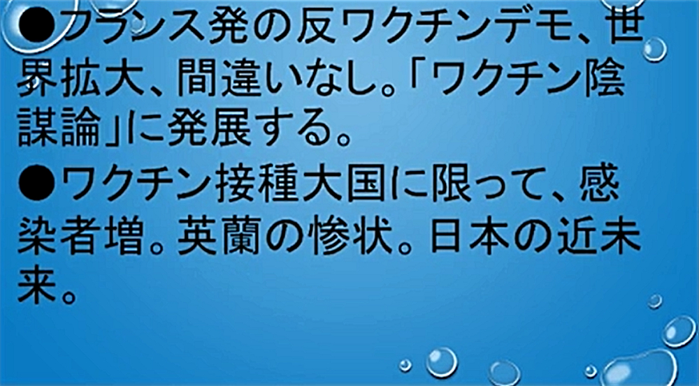 ◆ワクチンは、感染拡大の手口 ◆世界に広がる反ワクチン暴動!真正フランス革命が世界に伝播する! ◆ワクチン強要は、もう通用しない! ◆ワクチンのおかげで、飛行機が飛ばなくなる。飛んだら、落ちる。 ◆キチガイオリンピック、なりふり構わず強行開催でパンデミックへ! |