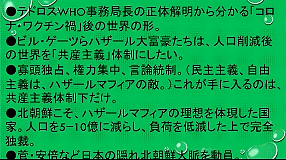 ◆テドロスWHO事務局長の正体解明から分かる「コロナ・ワクチン禍」後の世界の形。 ◆ビル・ゲイツらハザール大富豪たちは、世界人口削減後の世界を「共産主義」体制にしたい。 ◆寡頭独占,権力集中,言論統制、これが手に入るのは、共産主義体制下だけである。民主主義,自由主義は、ハザールマフィアの敵でしかない。 ◆北朝鮮こそ、ハザールマフィアの理想を体現した国家である。人口を5億~10億人に減らし、負荷を低減したした上で完全独裁。 ◆DEEP STATE裏社会は、菅・安倍など日本の隠れ北朝鮮人脈を動員し、新型コロナワクチンテロに協力させている。 ◆テドロス氏は1981年から2018年まで、エチオピアを統治したティグレ人民解放戦線(TPLF)のギャングマフィアの上級幹部であり、保健大臣と外務大臣を務めた。TPLFによるエチオピア国内のソマリア人居住区、オガデンの住民に対する大量虐殺に関与しているという。オガデンへの食糧と医薬品の供給を止めたため、干ばつ,飢饉,疫病で多くが死んだ。そんな経歴の人物が、なぜ、WHOの事務局長なのか?極めて不思議な事実である。このようないわくつきの人物であるテドロス氏を、WHOの事務局長に据えたのは、ビル・ゲイツである。 ◆WHOの”資金源割合„(2018~2019年) ◆WHOは、ビル・ゲイツの人殺し作戦(世界人口削減計画)に協力している。 ◆日本国家のなかに、北朝鮮血統の国家内国家が存在する!その北朝鮮系統の国家内国家(自民党・公明党)が、現在の日本の政治を牛耳っている。現在、これらの北朝鮮人脈が、ビル・ゲイツ氏,テドロス氏と組んで、新型コロナワクチン大虐殺を行っている。 |