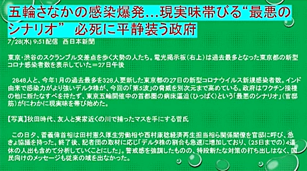 ◆ワクチン接種による感染率と死亡率の上昇。ワクチンで感染を90%回避できるという嘘の流布。騙して殺人ワクチンを打たせるため。接種者を殺そうとするどす黒い悪意。 ◆ワクチン接種によるADEとは、別の次に起きる問題点。マイナーな病気で死ぬ。 ◆イスラエル・英国の二の舞が日本で。 ◆日本のワクチン死者の実数は、毎月、4,000~5,000人。 ◆利権オリンピック強行開催で、菅政権の支持率、危険水準へ。 ◆この調子で、自公過半数割れ、政権交代へ!墓穴掘り、絶好調。 |