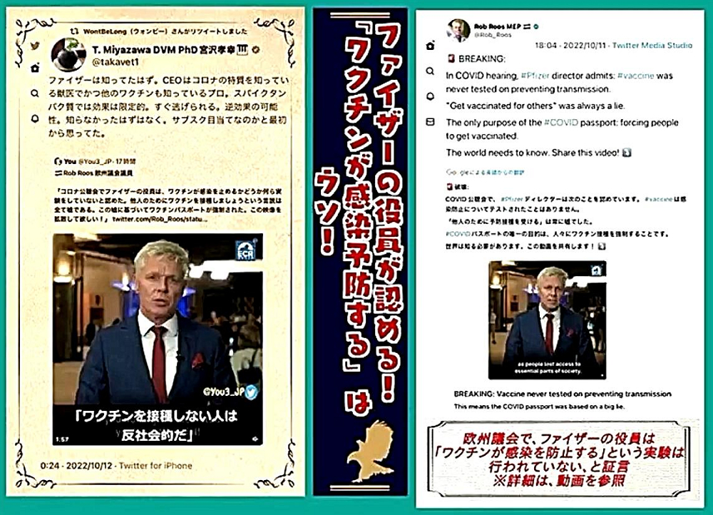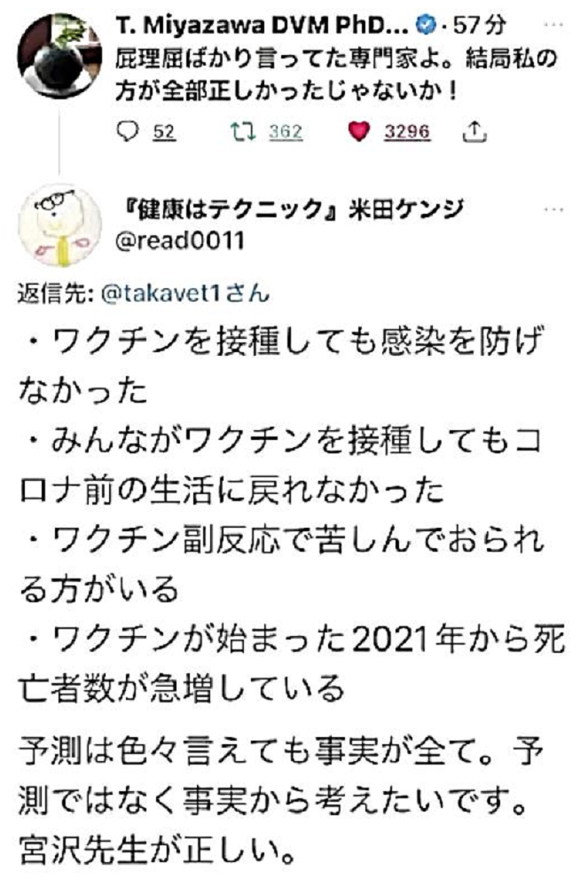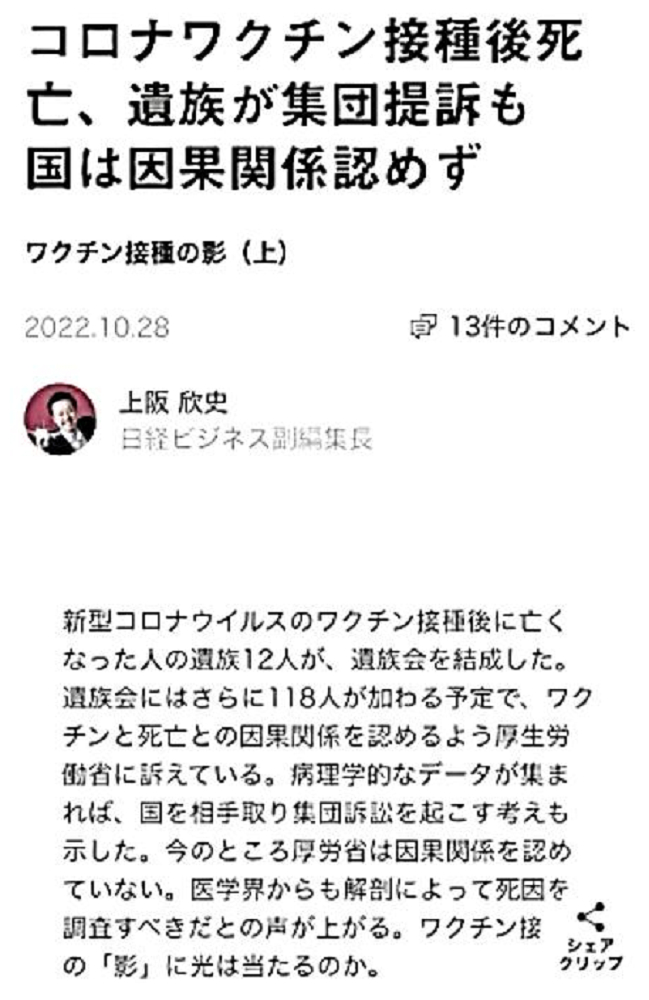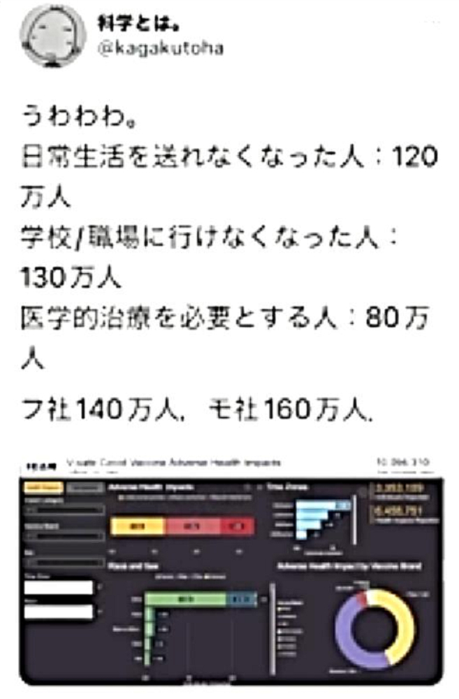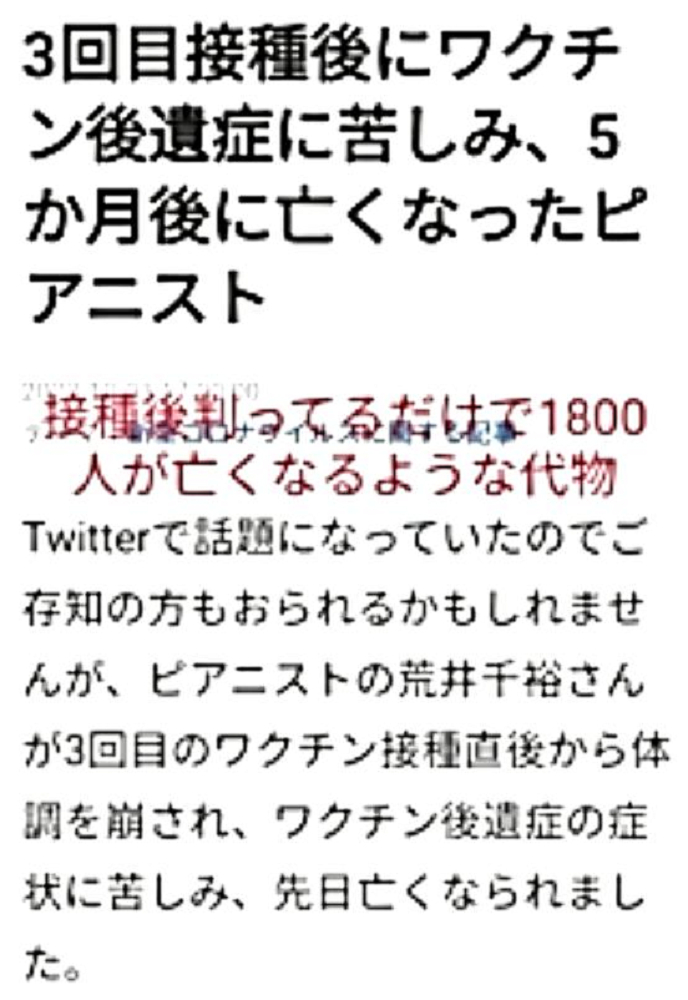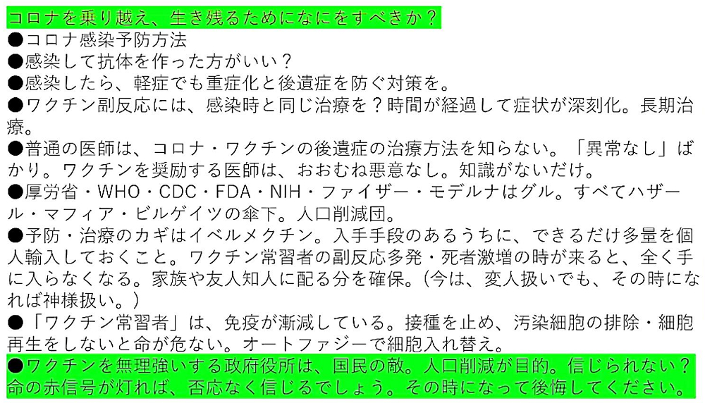 「日本国民の大半は、コロナ・ワクチンが『殺人目的』であることを理解していない。だから、ワクチンを打つ。よって、死ぬ!」 |