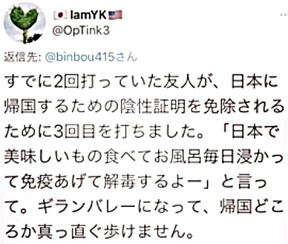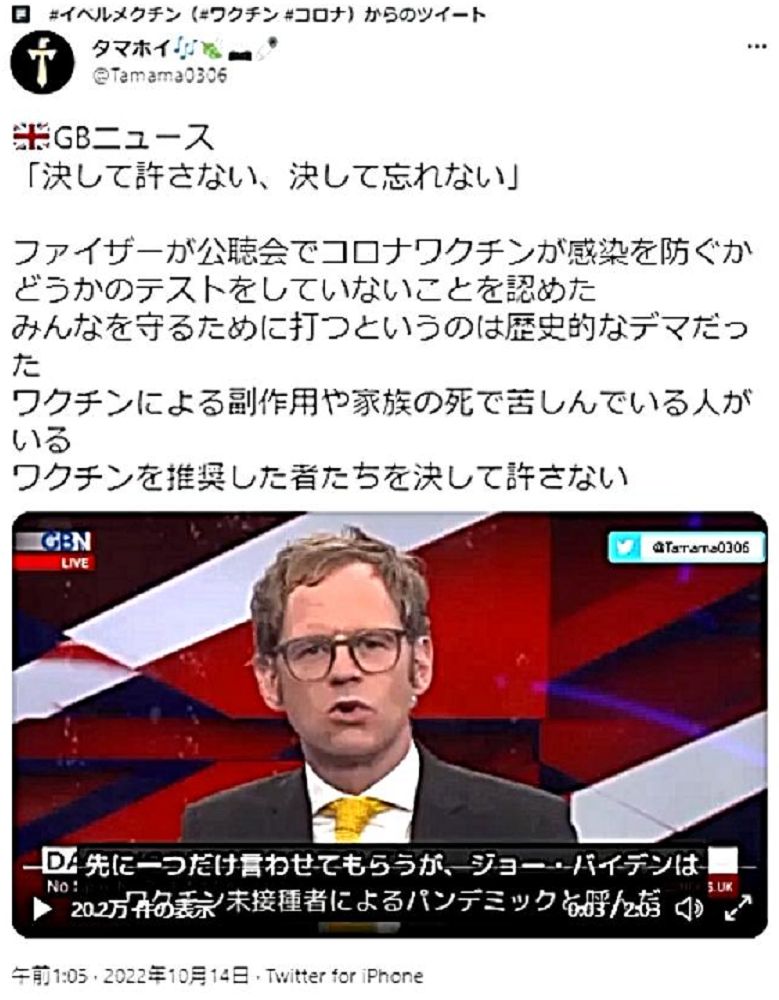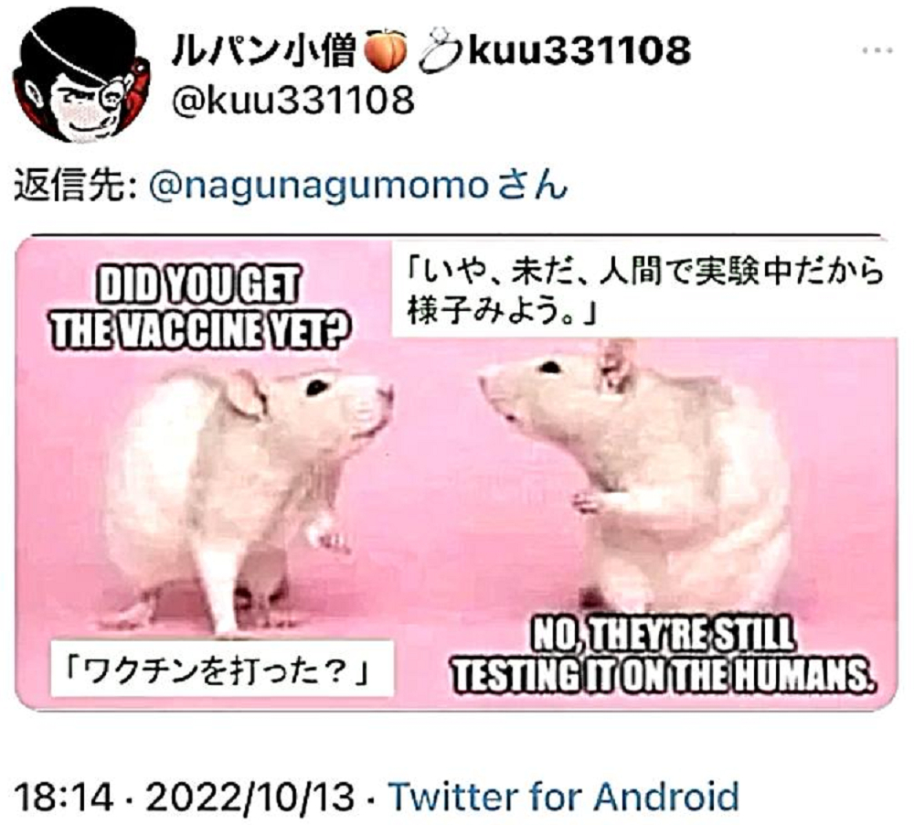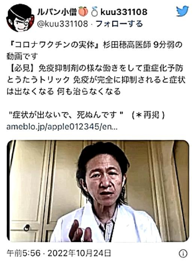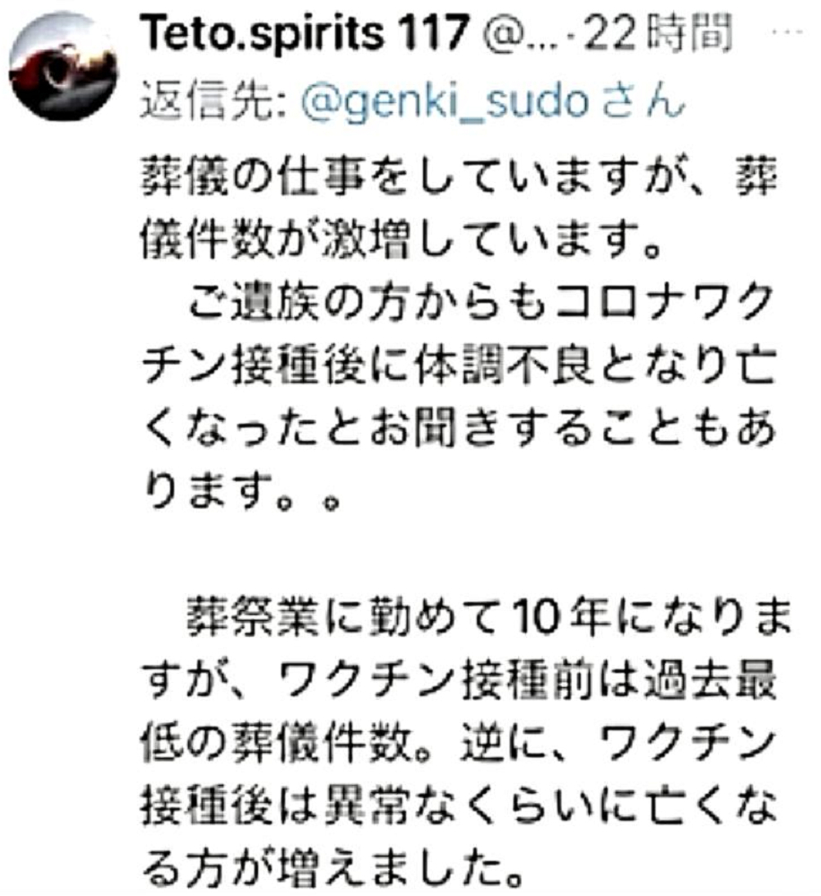 「日本国民の大半は、コロナ・ワクチンが『殺人目的』であることを理解していない。だから、ワクチンを打つ。よって、死ぬ!」 |