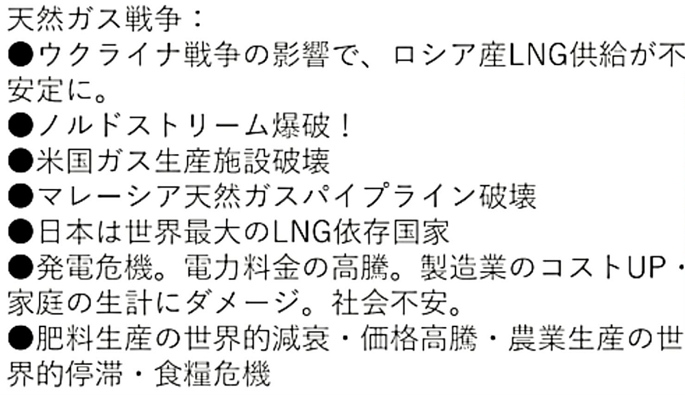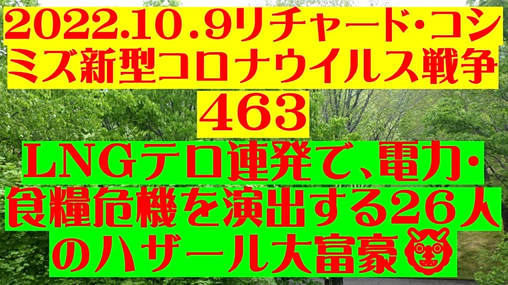 「『天然ガスパイプラインテロ連発』で、『電力・食糧危機を演出する26人のハザール大富豪』は許さない!👹」 ◐ノルドストリーム爆破! ◐米国ガス生産施設破壊! ◐マレーシア天然ガスパイプライン破壊! ◐日本は、世界最大のLNG依存国家。 ◐発電危機。電力料金の高騰。製造業のコストUP・家庭の生計にダメージ。社会不安。 ◐肥料生産の世界的減衰・価格高騰・農業生産の世界的停滞・食糧危機。 ◐和食化(米食の推進・稲作採算化)。 ◐家庭菜園(地方移住・地方活性化)。 ◆露西亜・中国との協力関係。多極化に対応。 |