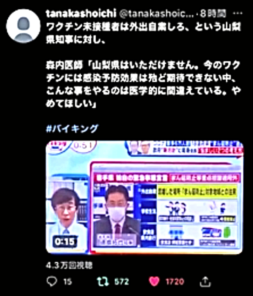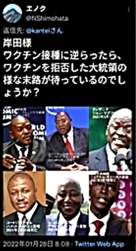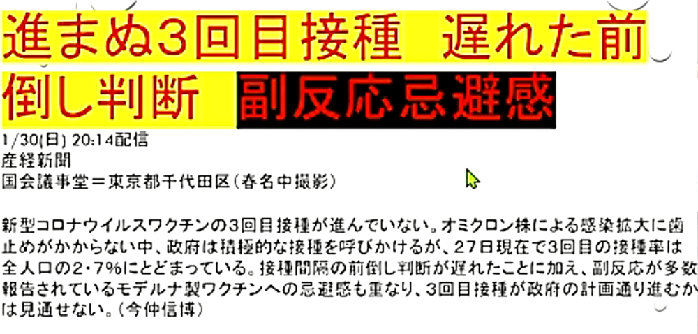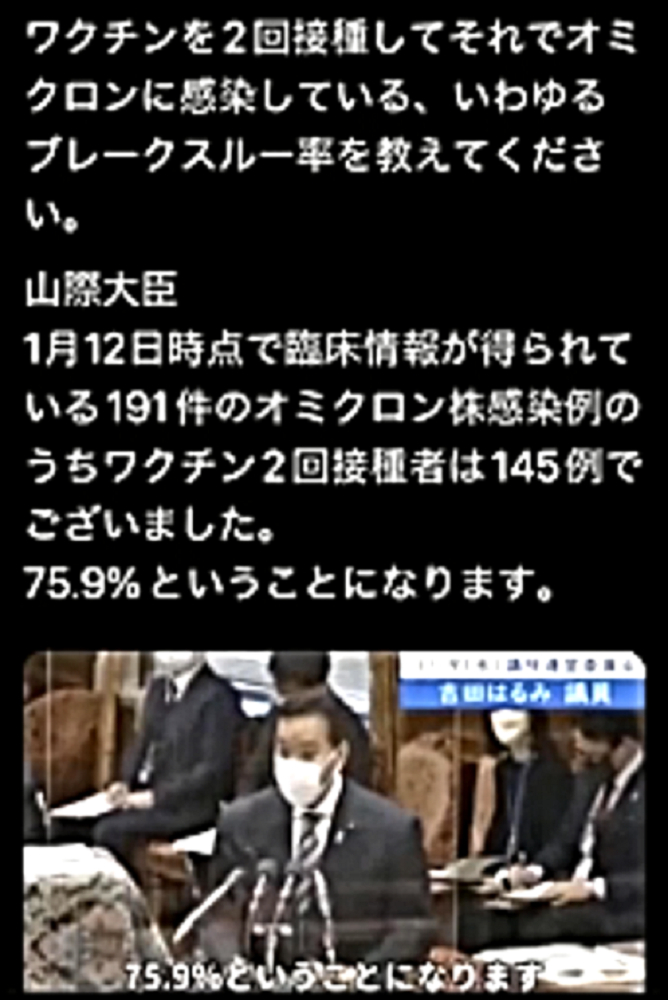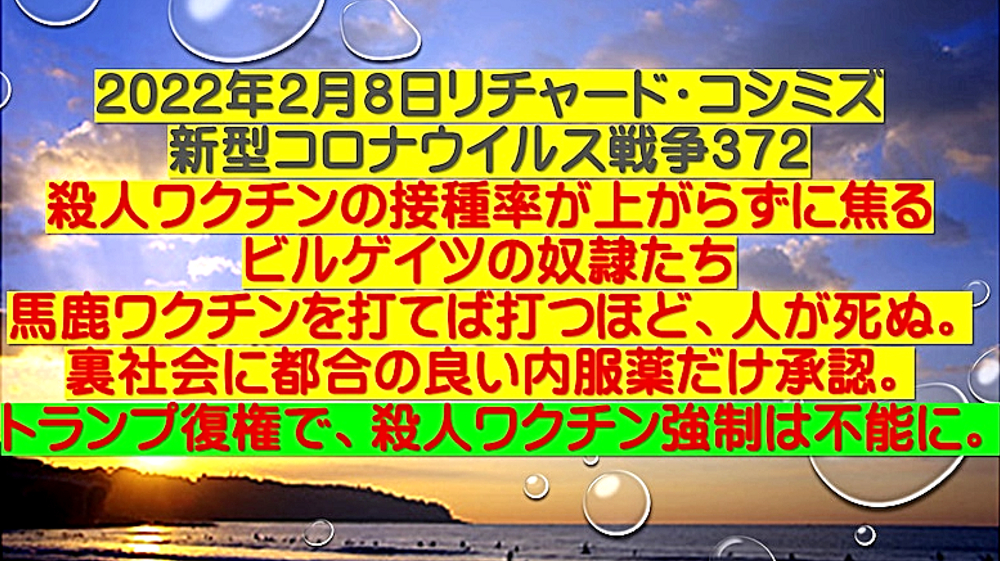 「『新型コロナ攻撃』は失敗か?『マールブルグテロ』を阻止し、一気に『DEEP STATE裏社会』を殲滅」 ◆ワクチン未接種者は外出自粛しろ、という山梨県知事に対し、森内医師「山梨県はいただけません。今のワクチンには感染予防効果は殆ど期待できない中、こんな事をやるのは医学的に間違えている。やめてほしい」 ◆叔父がワクチン接種後3日目くらいからかなりの物忘れが始まり、どんどん症状が酷くなって、「狂牛病」と診断された。狂ったように叫び、暴れ、手がつけられない状態に。叔父はすでに、手、足をベッドにくくられ、胃ろう(胃にチューブを通し栄養を入れる)もされ、亡くなるのを待つばかり。 ◆FOX NEWS 「もう1回のブースターで解決しようとする考えは、まさに正気の沙汰とは思えません。mRNAワクチン、mRNA COVIDワクチンは、今すぐ市場から撤退する必要があります。ワクチンが、オミクロンに全く効かないことが完全に明らかになりました」 ◆「キチガイ毒ワクチン」接種を忌避すべき理由はいくらでもあるにも関わらず、ワクチンを打たせることしか考えない岸田文雄とビル・ゲイツの奴隷たち。 ◆進まぬ3回目接種 遅れた前倒し判断 副反応忌避感 「新型コロナウイルスワクチンの3回目接種が進んでいない。オミクロン株による感染拡大歯止めがかからない中、政府は積極的な接種を呼びかけるが、27日現在で3回目の接種率は全人口の2.7%にとどまっている。接種間隔の前倒し判断が遅れたことに加え、副反応が多数報告されているモデルナ製ワクチンへの忌避感も重なり、3回目接種が政府の計画通り進むかは見通せない」 ◆忽那賢志大阪大学医学部教授は、ビル・ゲイツに命令され、日本国民をワクチンで殺す任務を与えられている。そして、DEEP STATE裏社会の傀儡医師として魂を売ったからこそ、大阪大学医学部教授になることができたのである。 ◆東北有志医師の会の立ち上げ 「私たちはこれまで、コロナ問題に対し警鐘を鳴らしてきました。しかし、政府、自治体、医師会そして大学病院は、盲目にワクチン接種を推進し、子供にまで接種しようとしています。まだ治験段階であり、長期安全性も不明なまま接種を推進する行為は、医師としてあるまじき行為であり、犯罪行為と言っても過言ではありません。北海道有志医師の会の力添えを借り、東北にも有志による医師の会を立ち上げました。この動きが全国に拡大し、この茶番とも言える異常事態を収束させたいものです」 ◆「ワクチンには効果がない」のではない。ワクチンは、殺人目的のバイオテロ兵器である。狂牛病・HIV・癌が待っている。 ◆オミクロン株感染で入院の6割は2回接種済み 国立感染症研究所 ◆山際大志郎大臣:「1月12日時点で臨床情報が得られている191件のオミクロン株感染例のうち、ワクチン2回接種者は145例でございました。75.9%ということになります」 ◆インド:ハリヤナ州が正直に公表したデータによれば、「今年のワクチン接種者のコロナの死亡率は、非接種者の5倍である」ことが判明。 ◆ワクチン接種が少なく3回目がない南アフリカやインドのオミクロン株感染者数はデルタ並み。被害規模も小さく死亡も少ない。対して、ワクチン接種3回目を完了し4回目に突入のイスラエルでは、オミクロン株感染者数はデルタの10倍、死亡者数はほぼデルタに並んだ。この対比を知れば、誰も3回目を打たない。だから、酷い情報だけを誇大宣伝。騙されるな! ◆HIVを発見し、2008年にはノーベル生理学・医学賞を受賞した「フランスのウイルス学者 リュック・アントワーヌ・モンタニエ博士」:「3回目のワクチン接種を受けた人は、エイズの検査を受けに行って下さい。びっくりするような結果が出るかもしれません。そしたら、政府を訴えて下さい」 ◆ワクチンブースターの後に、米軍で謎のガン発生率が急増 ◆大村さん開発のイベルメクチン、胆管がんに効果 九大 ◆オミクロン株はピークアウトしている。よって、キチガイワクチンを打つべき理由はない。 |