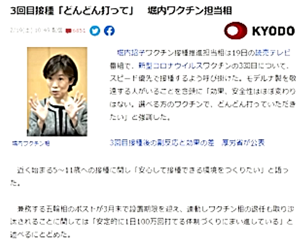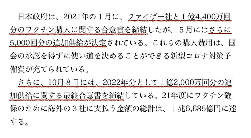 「殺人ワクチンの接種率が上がらずに焦るビル・ゲイツの奴隷たち。馬鹿ワクチンを打てば打つほど、人が死ぬ。DEEP STATE裏社会に都合の良い内服薬だけ承認。ドナルド・トランプ復権で、殺人ワクチン強制は不能に」 ◆新型コロナワクチンを接種したのにコロナ感染、ワクチン接種者が死亡・寝たきり状態。 ◆新型コロナワクチンの3回目接種率:全人口の3.2% ◆コロナ対策、菅政権と比べ明らかに「劣化」「3回目接種率」は”世界最低クラス„ 閣僚人事で透ける軽視姿勢(夕刊フジ) ◆岸田総理❝一日100万回接種❞指示へ 政権幹部「接種回数を増やさないと、政権がもたない」 ◆日本政府は、2021年の1月に、ファイザー社と1億4,400万回分のワクチン購入に関する合意書を締結したが、5月にはさらに5,000回分の追加供給が決定されている。これらの購入費用は、国会の承認を得ずに使い道を決めることができる新型コロナ対策予備費が充てられている。 さらに、10月8日には、2022年分として1億2,000万回分の追加供給に関する最終合意書を締結している。2021年度にワクチン確保のために海外の3社に支払う金額の総計は、1兆6,685億円に達する。 |
