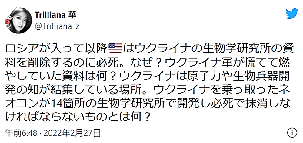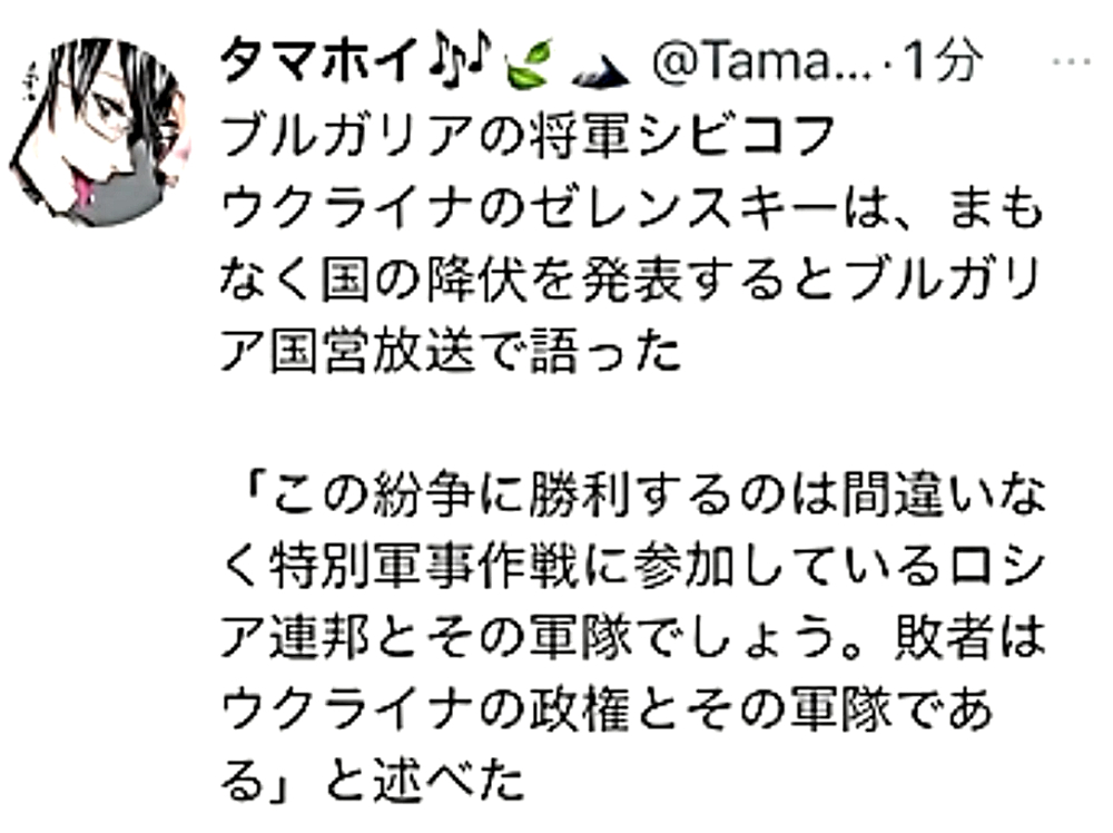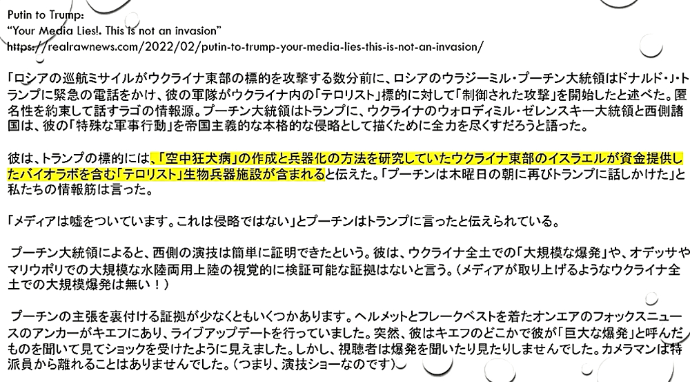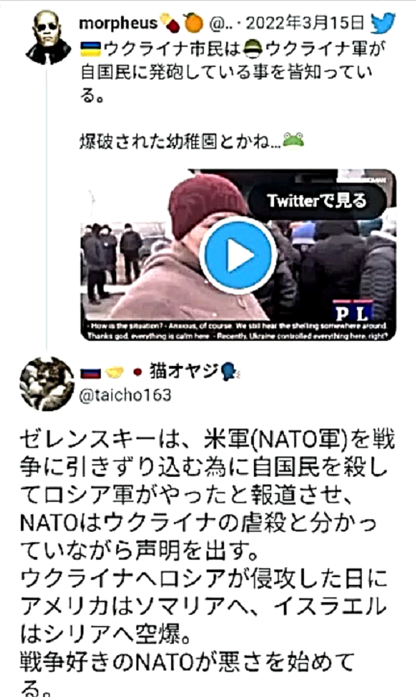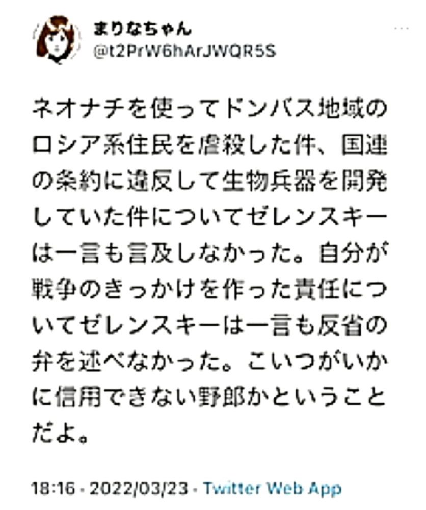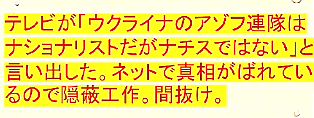 「ウクライナ国民は、ロシア侵攻の原因となったDEEP STATEネオナチを叩き出せ。非武装中立が唯一の解決策だ」 |