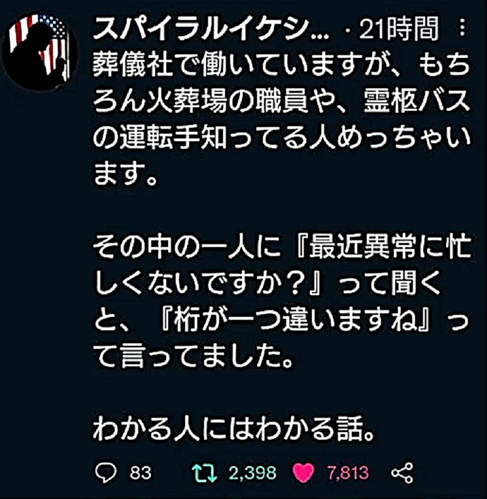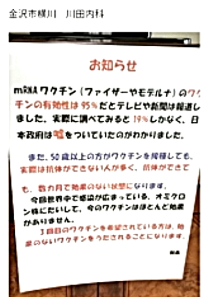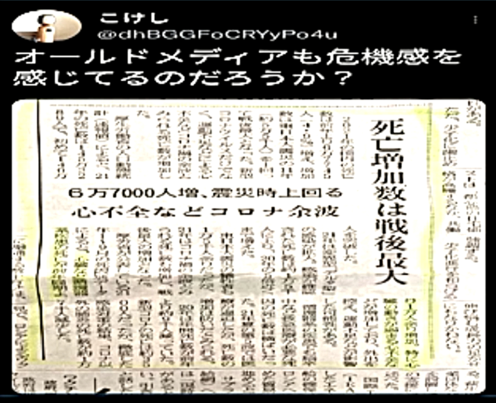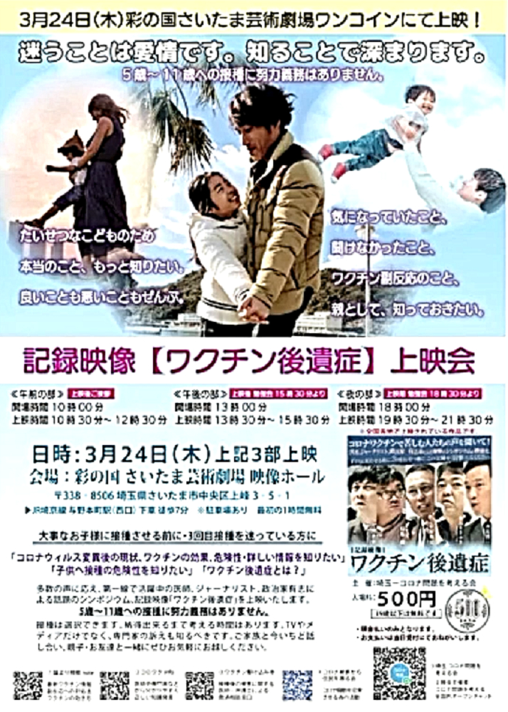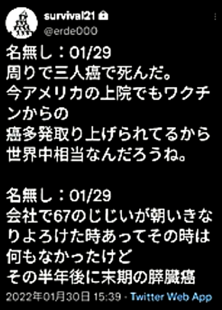「コロナ禍を自然の疫病と信じて毒ワクチンを3回も打った人たちは、ウクライナ紛争では、『プーチンは悪魔』・『ロシアは侵略者』と信じて疑わない。そして、ワクチンのおかげで、バタバタと死んでいく。生き残るのは、賢者のみ」 ◆ウクライナ市民は、ウクライナ軍が自国民に発砲していることを、皆知っている。 ◆ゼレンスキー大統領は、米軍(NATO軍)を戦争に引きずり込むために、自国民を殺して「ロシア軍がやった」と報道させ、NATOはウクライナの虐殺と分かっていながら声明を出す。ロシアがウクライナへ侵攻した日に、アメリカはソマリアへ、イスラエルはシリアへ空爆。戦争好きのNATOが悪さを始めている。 ◆生まれてからずっと、地下シェルターで育った子どもたち、ロシア・ウクライナ戦争 ◆フランス人ジャーナリストが証言 「ウクライナを爆撃しているのは、ロシア軍ではない。ウクライナ軍である」 ◆チリ共和国は、人口の93%がワクチン接種済みであるが、1~2月、ワクチン接種が比較的進んでいない子供以外の全ての年齢層で、甚大な超過死亡(50%)を発生させている。ワクチン接種が進んだ年齢層でのみ、超過死亡が増加。さらに、この超過死亡は、欧州各国のパンデミックの最悪期に相当する。 ◆ロバート・ウォレス・マローン博士(mRNAワクチンの発明者) 「いかなる状況下であっても、決してこのワクチンを接種してはならない」 ◆リュック・アントワーヌ・モンタニエ博士(ウイルスの研究でノーベル賞受賞) 「ワクチンの大量接種は、とんでもない過ちである。科学的な誤りであると同時に、医学的な誤りでもある。受け入れがたい過ちだ。なぜなら、ワクチン接種が変異株を生み出しているのだから」 ◆ギアート・バンデン・ボッシュ博士 「生来の免疫機能が毀損する。すぐにワクチン接種をやめろ!」 ◆キャリー・バンクス・マリス博士(PCR検査の発明者 ノーベル賞受賞) 「連中は間違った使い方をしている。PCRを感染症に使ってはならない」 ◆マイケル・イードン博士(元ファイザー副社長) 「ワクチン接種を行うと、数年内に死にます。政府が嘘をつくのは、あなた方を殺すためです」 ◆リー・メリット博士(米海軍の生物兵器研究者) 「新型コロナワクチンは、完全に『生物兵器』である」 ◆忽那賢志 大阪大学医学部教授(ワクチン接種による人類大虐殺共犯者) 「4回目のワクチン接種の有効性について、イスラエルから報告が出てきています。残念ながら劇的な効果というものではなく、ワクチン政策は大きな岐路に立たされそうです」 |