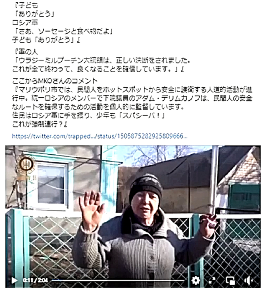 「President Putin has not only saved the lives of thousands of Ukrainian people. He saved all humanity from the crisis of 90% reduction.」 |