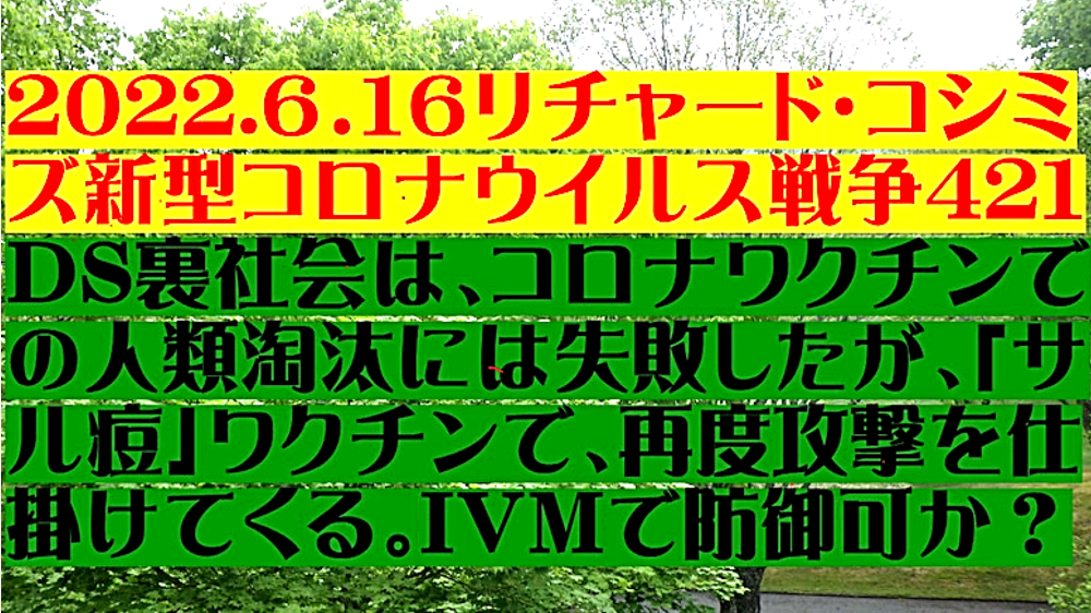 「『DEEP STATE裏社会』は、『コロナワクチン』での『人類淘汰』には『失敗』したが、『サル痘』ワクチンで、再度攻撃を仕掛けてくる。『IVM(イベルメクチン)』で防御可能か?」 |