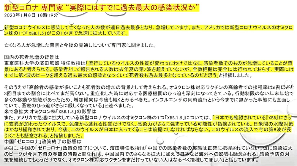 「『政府』も『マスコミ』も、『XBB1.5株』に『一切触れない恐怖』。 『国民』を『油断』させ、『感染爆発』で、『感染者・重症者・死者』を『激増』させる『魂胆』。『ジェノサイド(大量虐殺)』」 |