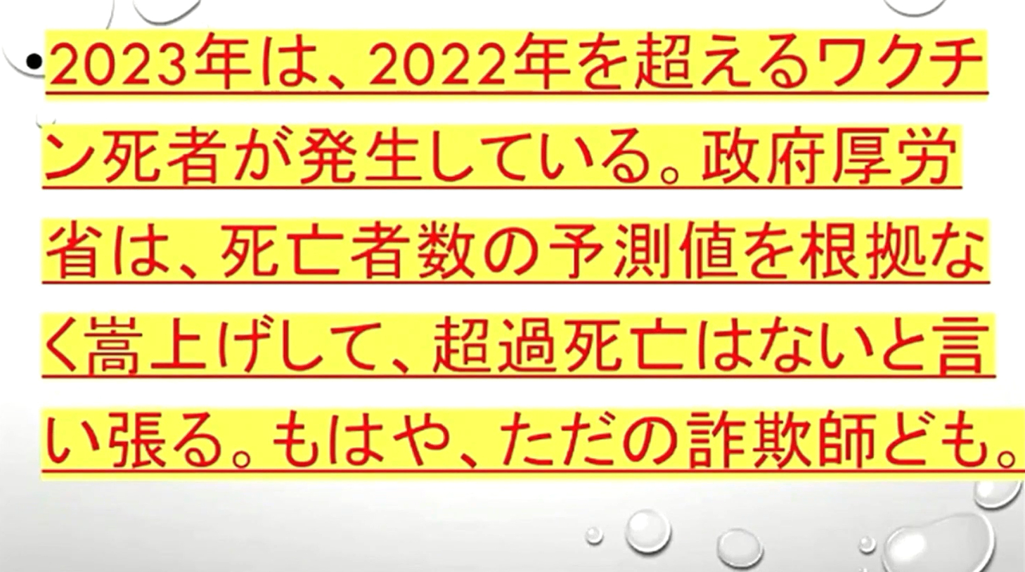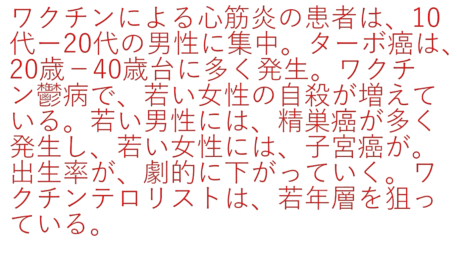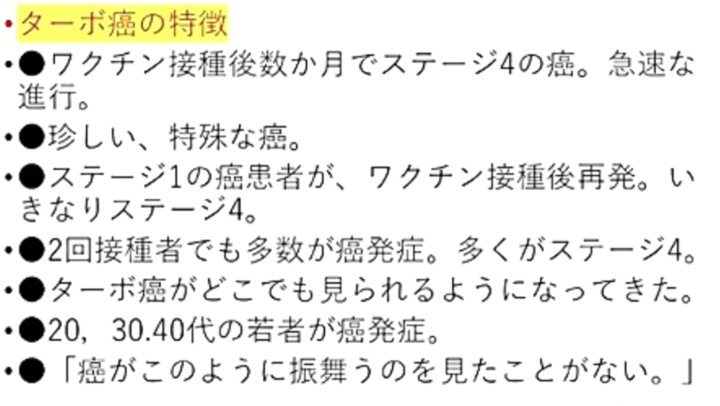 「いきなり『ステージ4の癌』になった?それは『ワクチン癌』です。進行が極めて速い『ターボ癌』です。『余命は数か月』。だが、『イベルメクチン投与』で、次々と『生還』しています。『膵臓癌・肝臓癌』の方、生き残りたかったら、『この動画』を見て下さい。『イベルメクチン治療費』は、『1万円』もあれば『充分』です」 |