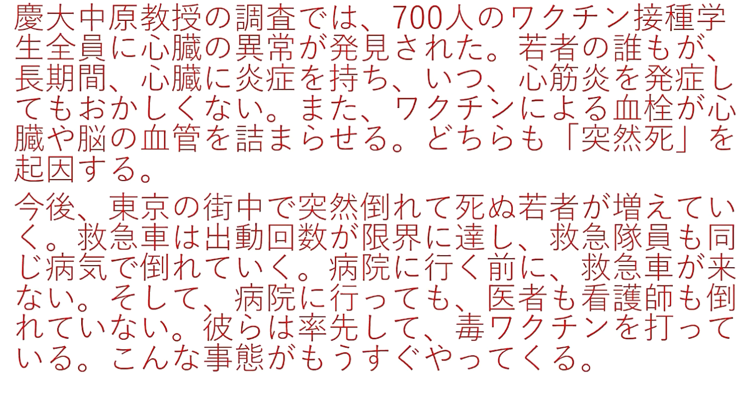 「『日本人』の『ワクチン接種者』は、軒並み、『心筋炎』で『死んでいく』のか?『イベルメクチン服用』で助かるのに」 |