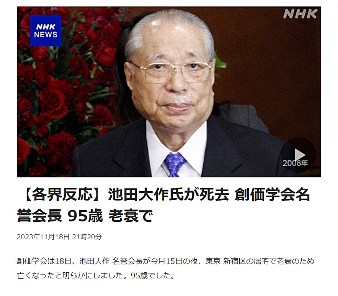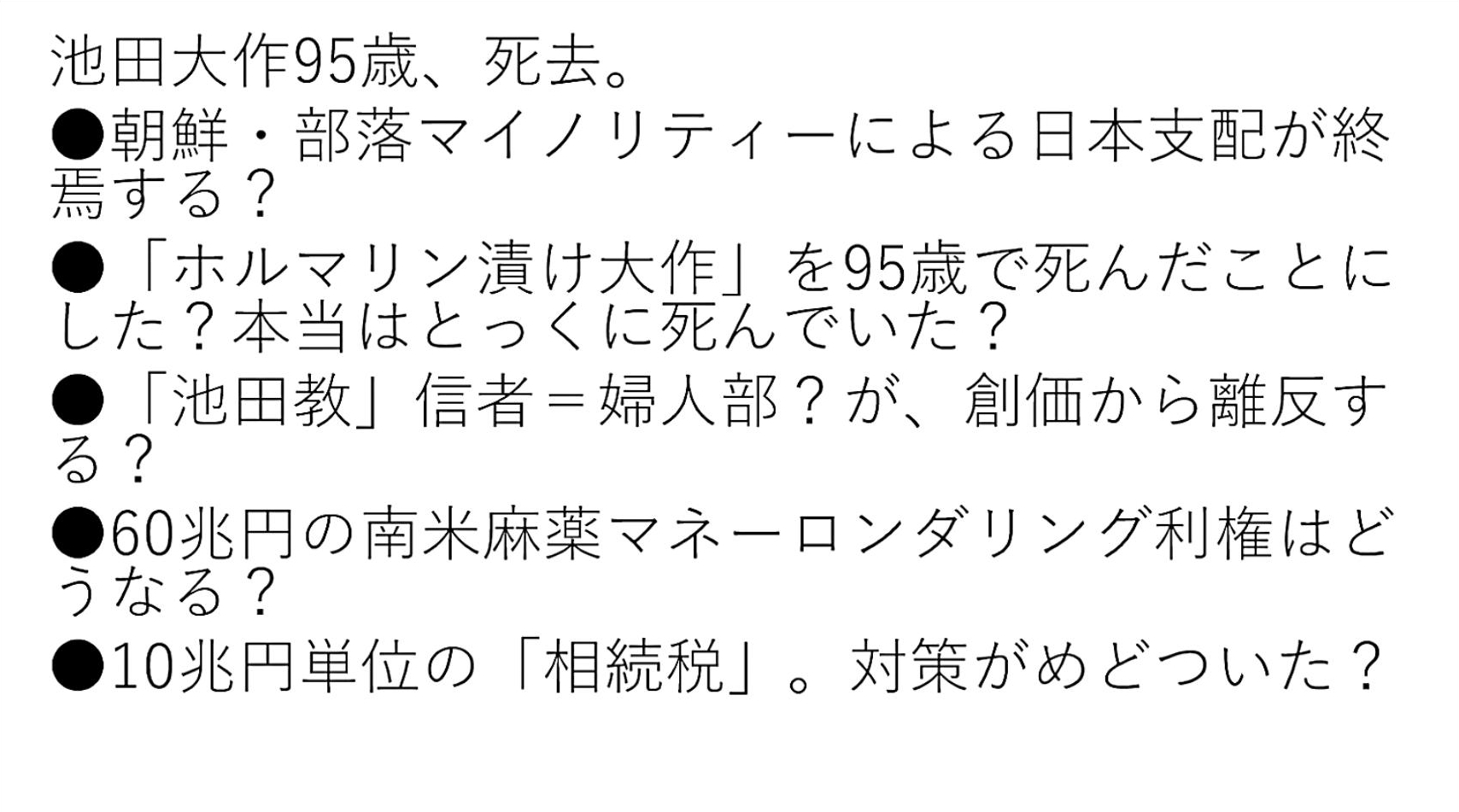 「『池田大作95歳で逝く』。『朝鮮・部落』の『対日支配構造』は、『終焉』するのか?」 |