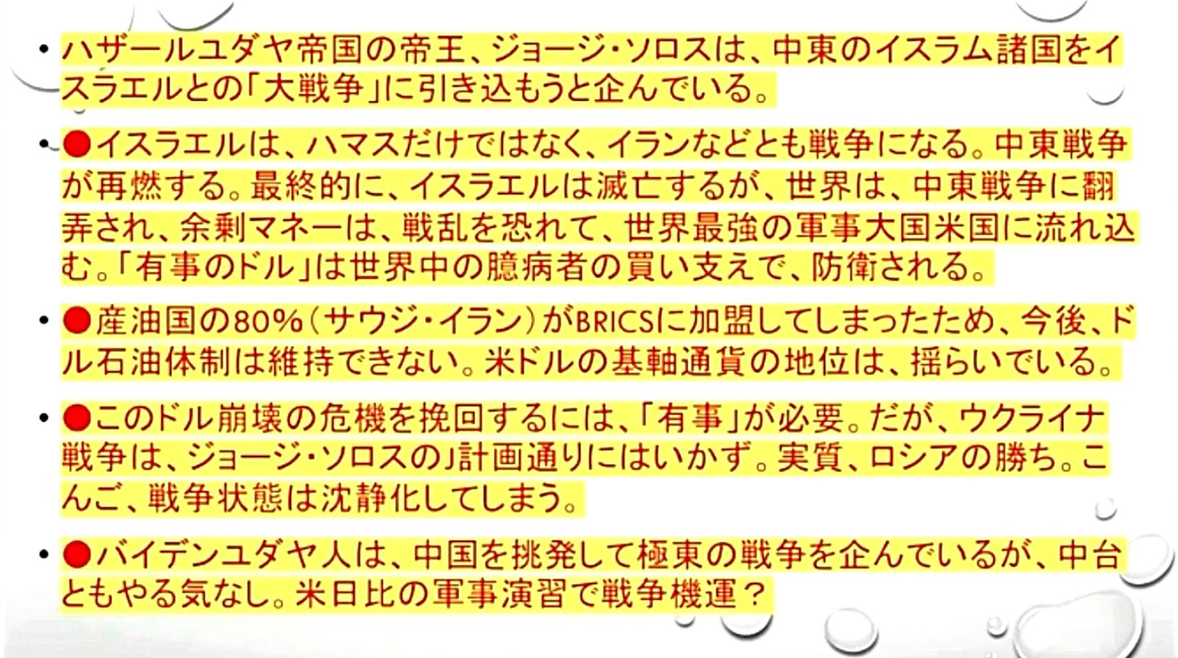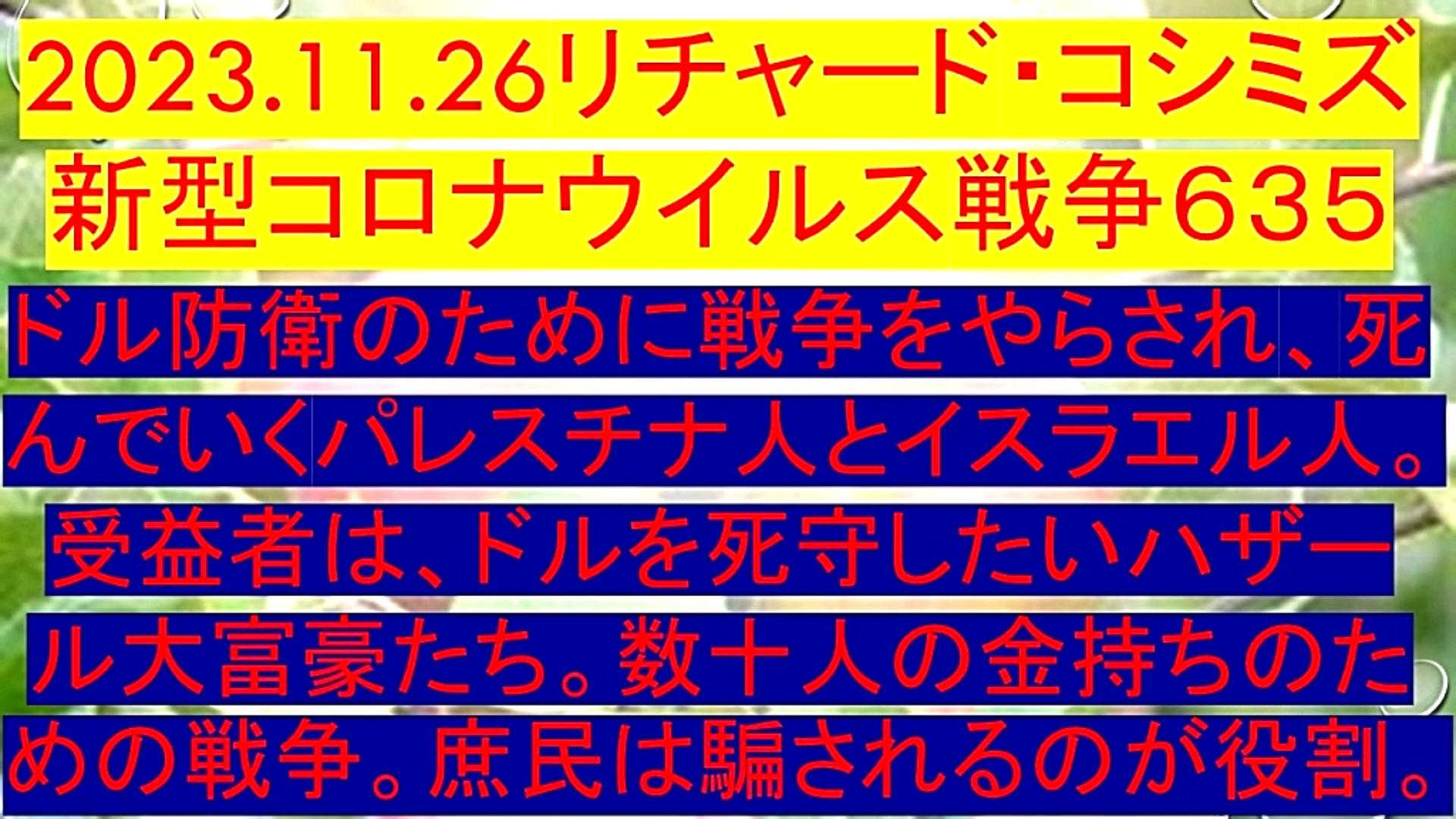 「『ドル防衛』のために『戦争』をやらされ、死んでいく『パレスチナ人』と『イスラエル人』。受益者は、『ドル』を死守したい『ハザール大富豪たち』。『数十人の金持ちのための戦争』。『庶民は騙されるのが役割』」 |