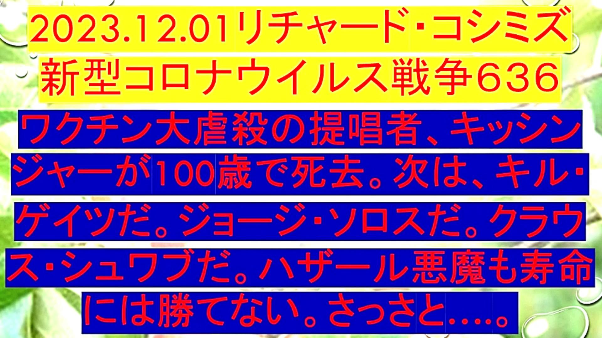 「『ワクチン大虐殺』の提唱者、『キッシンジャー』が『100歳で死去』。次は、『キル・ゲイツ』だ。『ジョージ・ソロス』だ。『クラウス・シュワブ』だ。『ハザール悪魔』も寿命には勝てない。さっさと....」 |