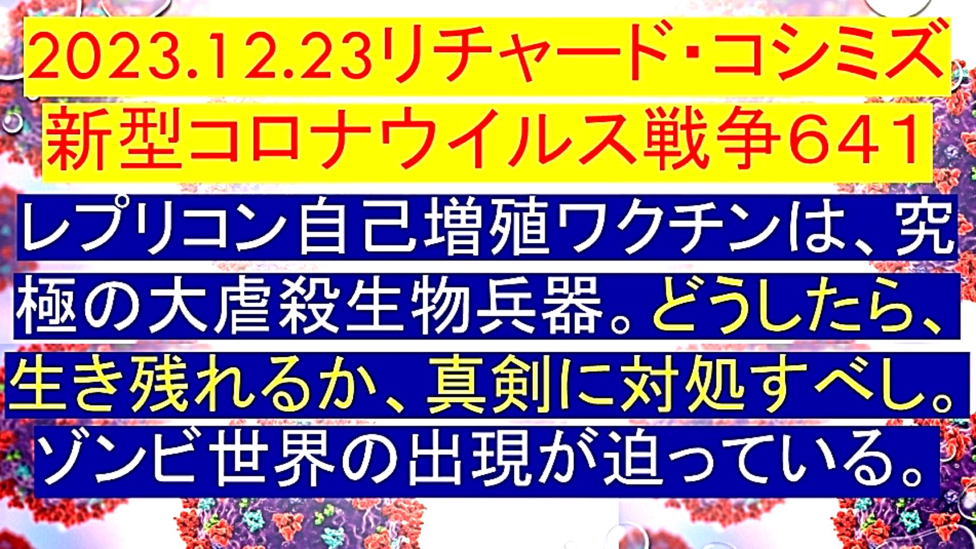 「『レプリコン自己増殖ワクチン』は、『究極の大虐殺生物兵器』。『どうしたら、生き残れるか』、『真剣に対処すべし』。『ゾンビ世界の出現が迫っている』」 |