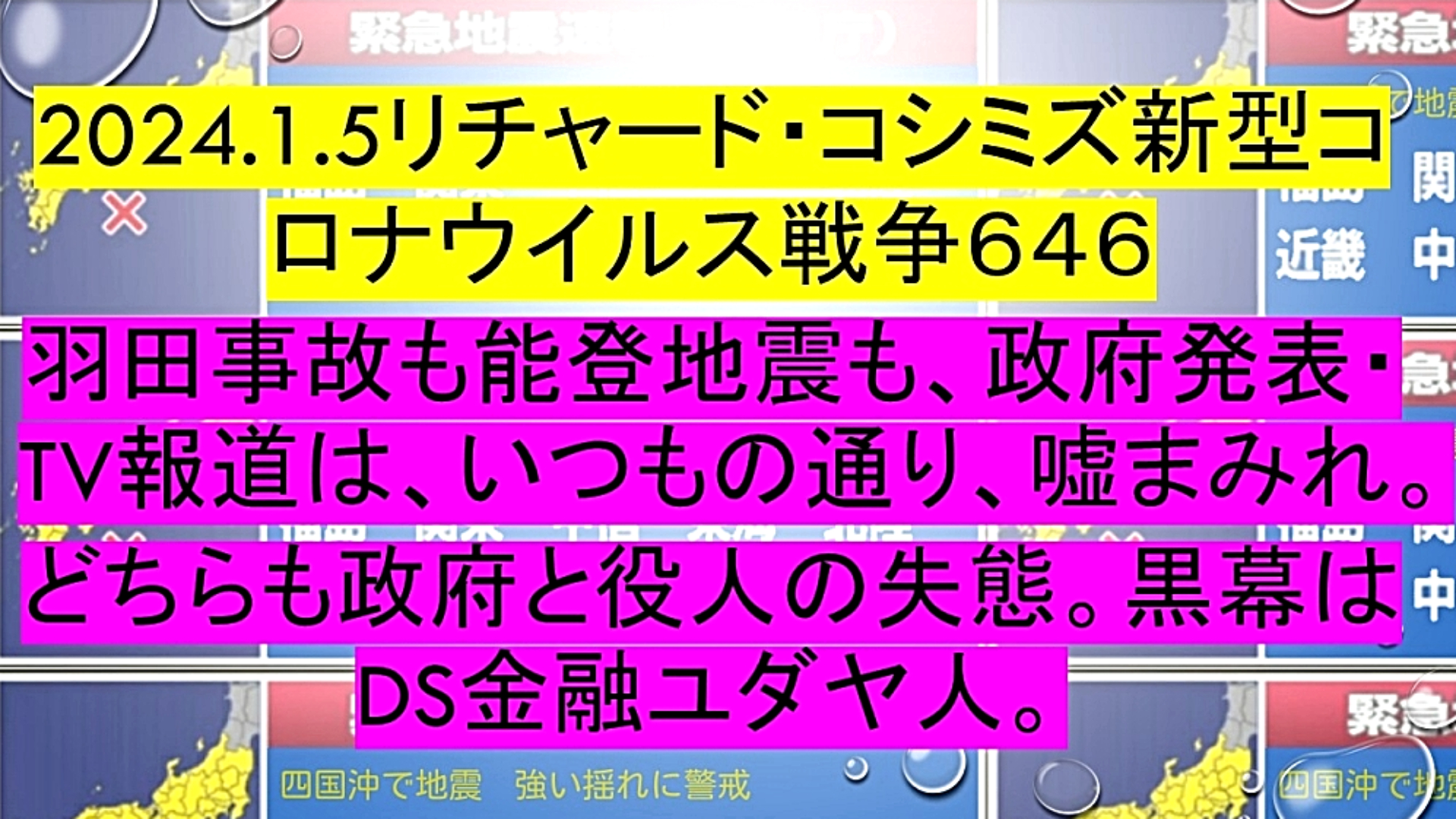 「『羽田事故』も『能登地震』も、『政府発表・TV報道』は、いつもの通り、『嘘まみれ』。どちらも『政府と役人の失態』。『黒幕』は、『DEEP STATE金融ユダヤ人』」 |