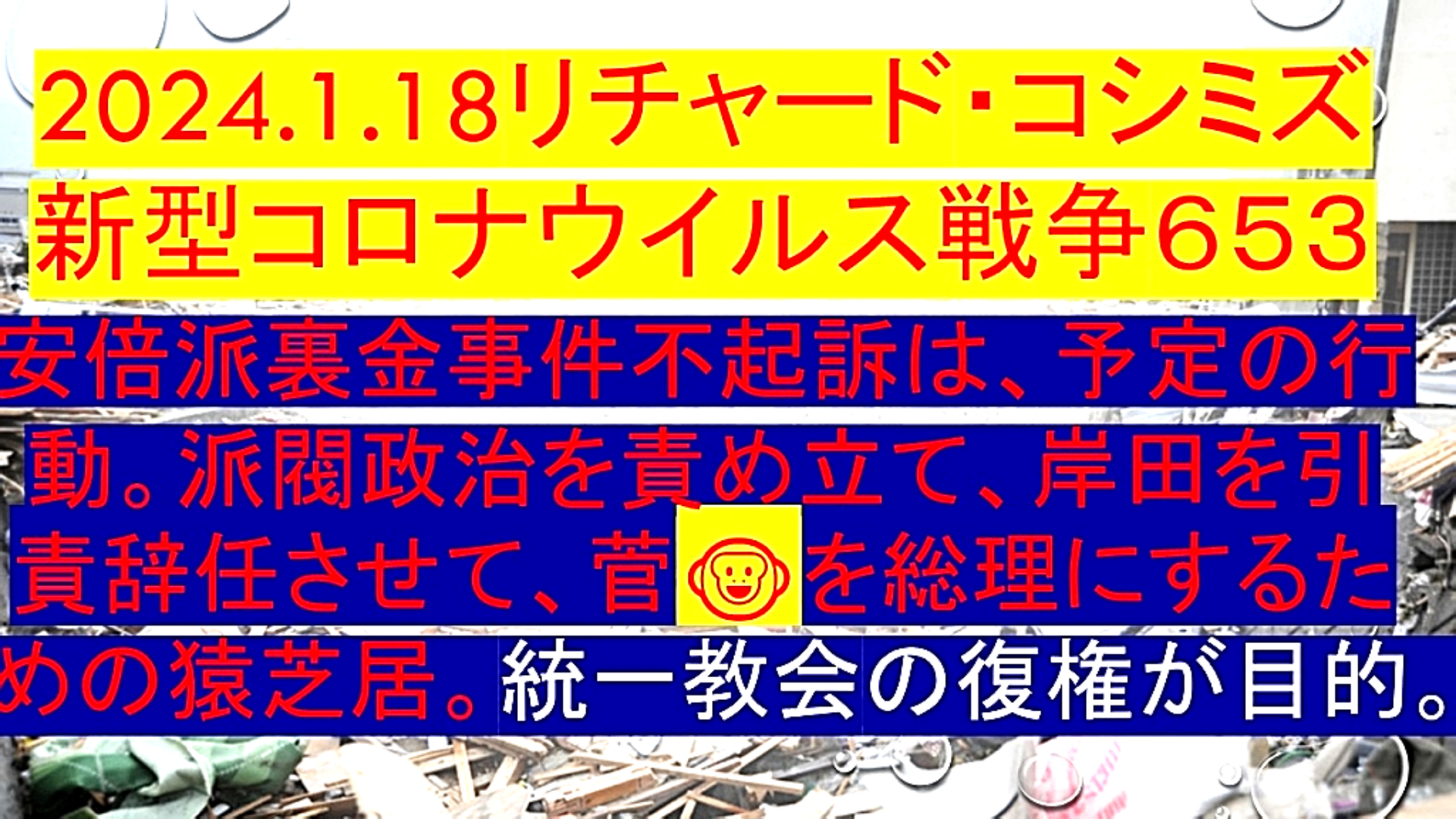 「『安倍派裏金事件不起訴』は、『予定の行動』。『派閥政治』を責め立て、『岸田文雄を引責辞任』させて、『菅義偉』を『総理』にするための『猿芝居』。『統一教会の復権』が『目的』」 |