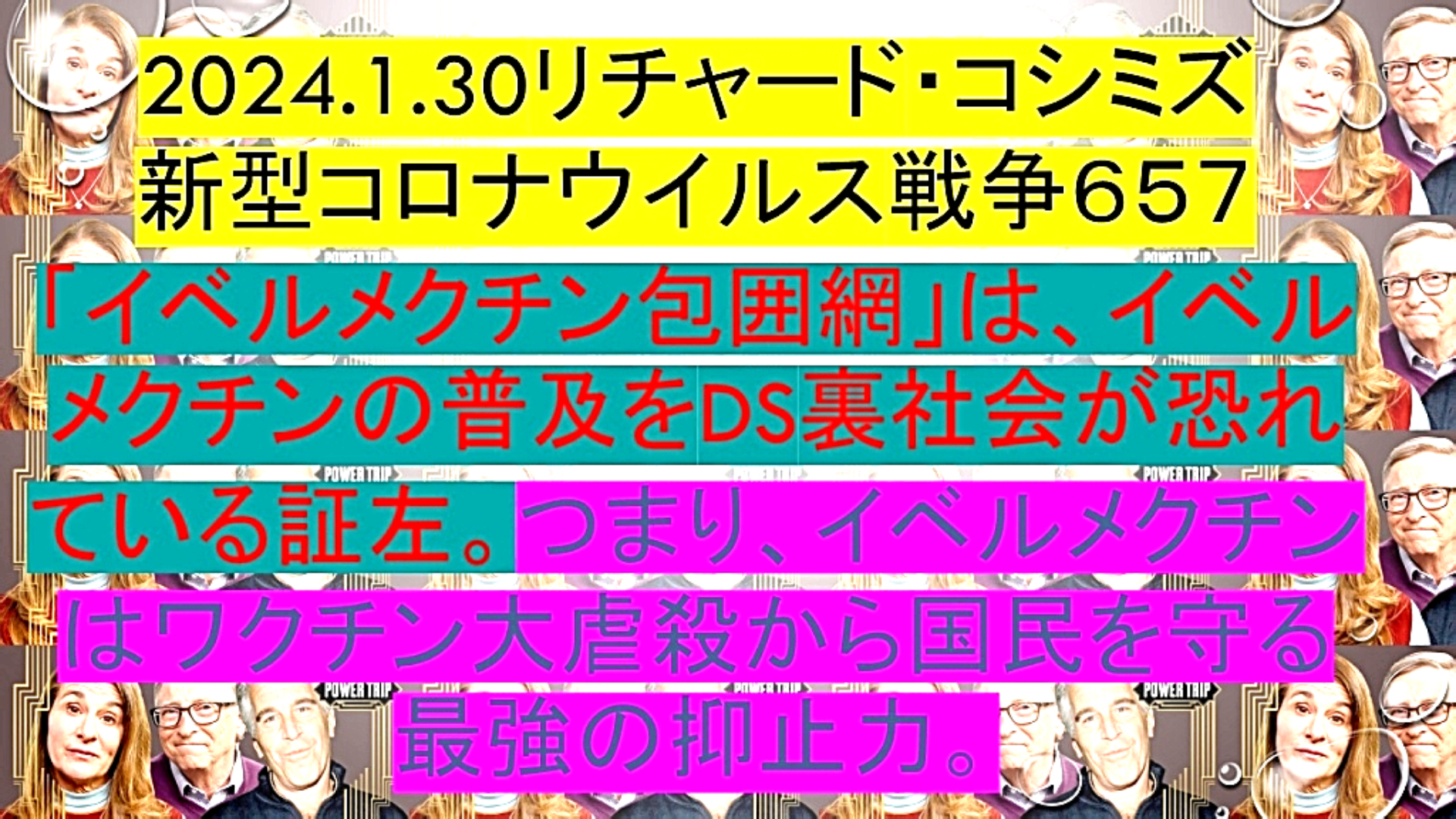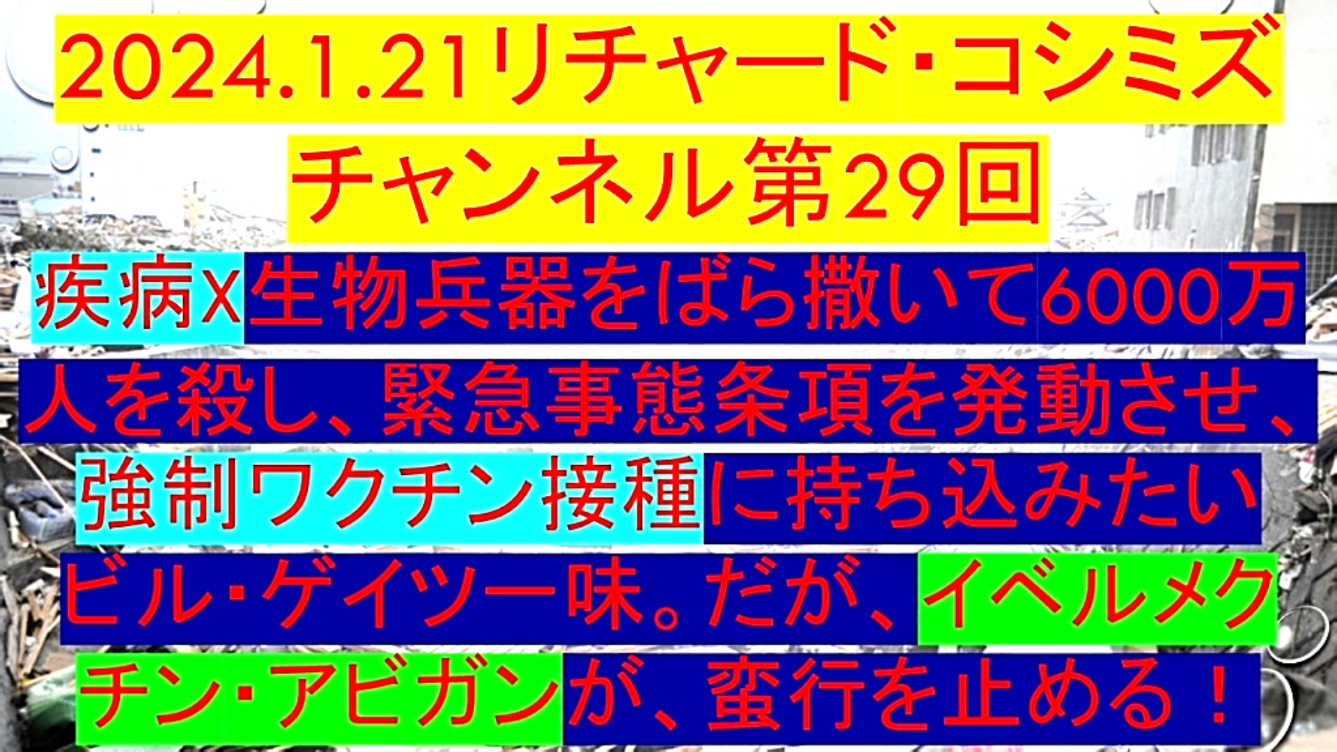 「『疾病X生物兵器』をばら撒いて『6000万人』を殺し、『緊急事態条項』を発動させ、『強制ワクチン接種』に持ち込みたい『ビル・ゲイツ一味』。だが、『イベルメクチン・アビガン』が、『蛮行を止める!』」 |