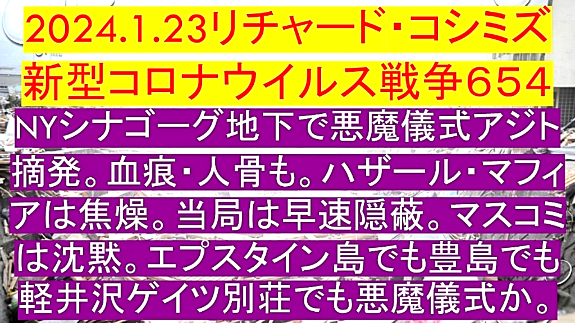 「『NYシナゴーグ地下』で『悪魔儀式アジト』摘発。『血痕・人骨』も。『ハザール・マフィアは焦燥』。『当局』は、『早速隠蔽』。『マスコミは沈黙』。『エプスタイン島』でも『豊島』でも『軽井沢ゲイツ別荘』でも、『悪魔儀式』か」 |