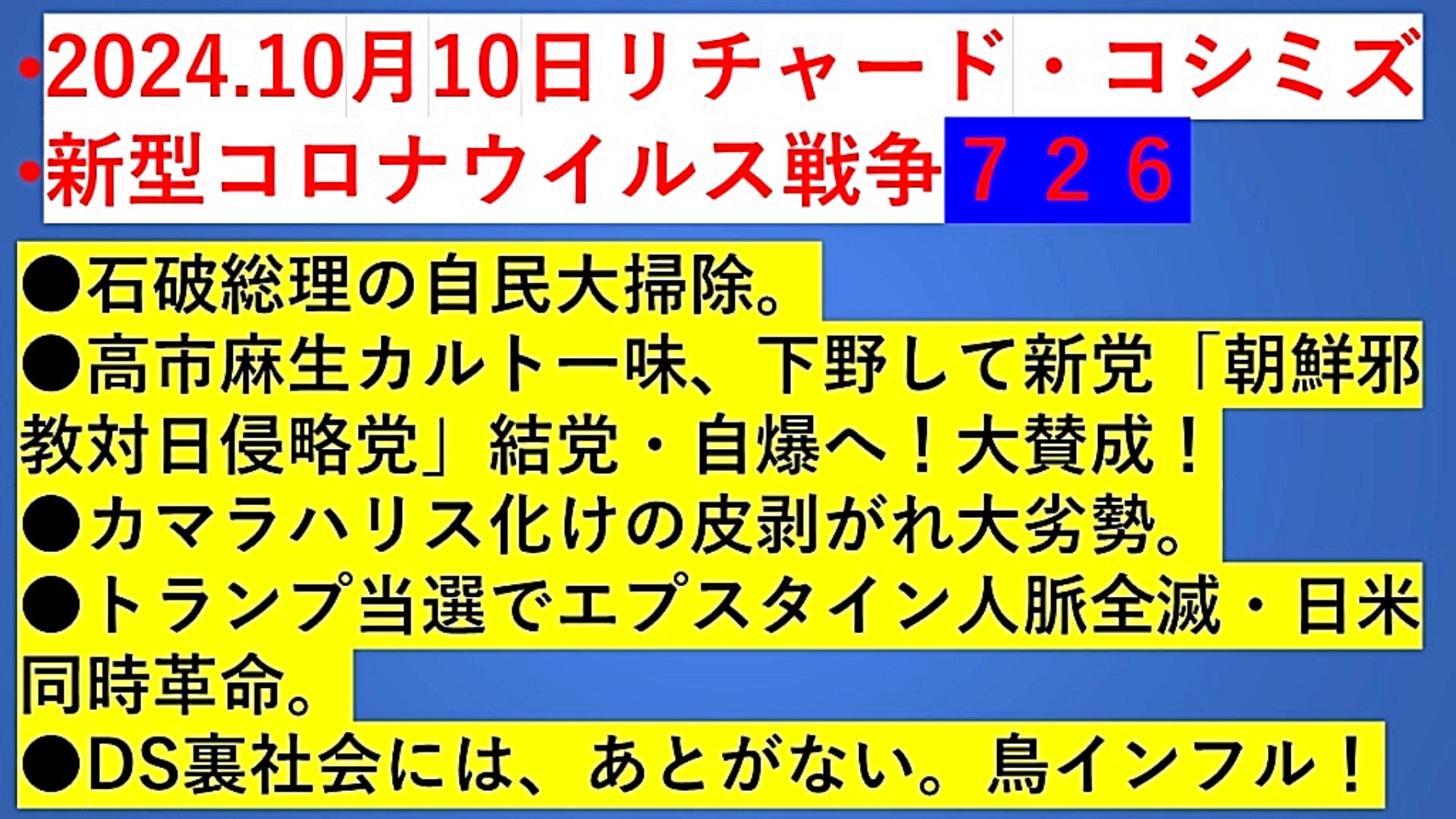 ◐『石破茂総理』の『自民大掃除』。 ◐『高市麻生カルト一味』、『下野』して『新党「朝鮮邪教対日侵略党」結党』・『自爆』へ!『大賛成』! ◐『カマラ・ハリス』、『化けの皮剥がれ』、『大劣勢』。 ◐『ドナルド・トランプ当選』で『エプスタイン人脈全滅』・『日米同時革命』。 ◐『DEEP STATE裏社会』には、『あとがない』。『鳥インフルエンザ・テロ』! |