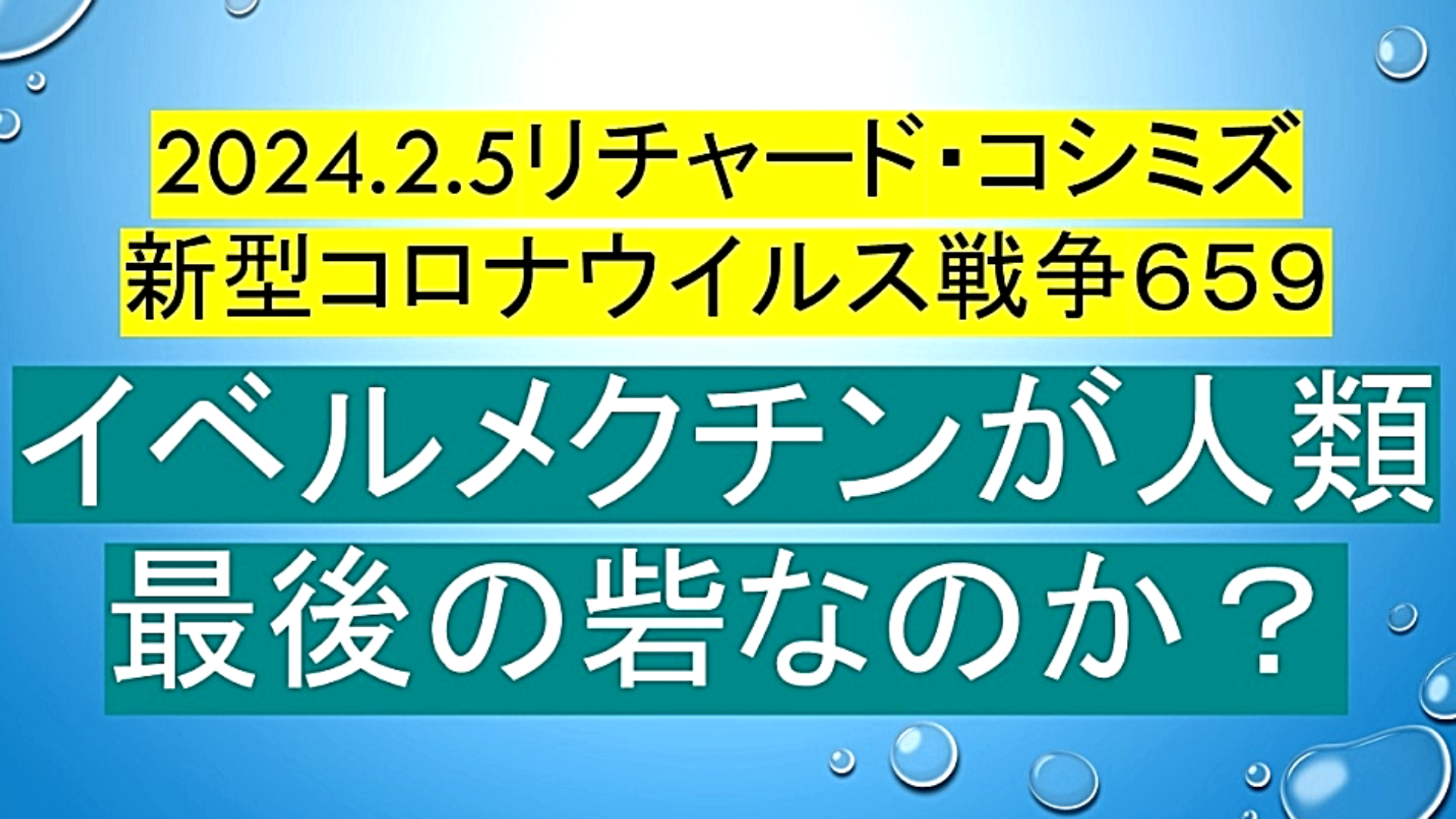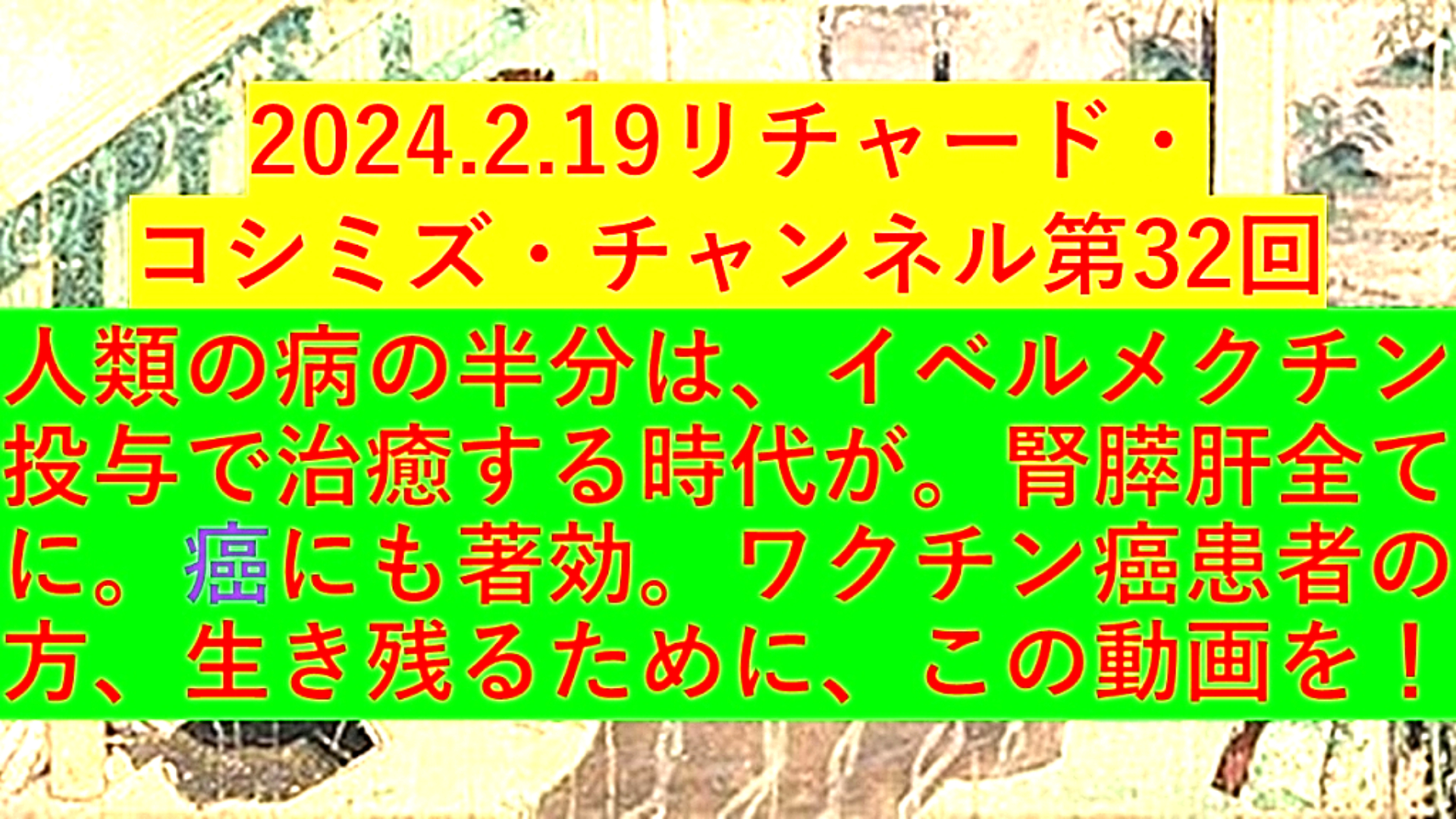 「『人類の病』の『半分』は、『イベルメクチン投与』で『治癒』する『時代』が。『腎膵肝』全てに。『癌』にも『著効』。『ワクチン癌患者』の方、『生き残る』ために、『この動画を!』」 |