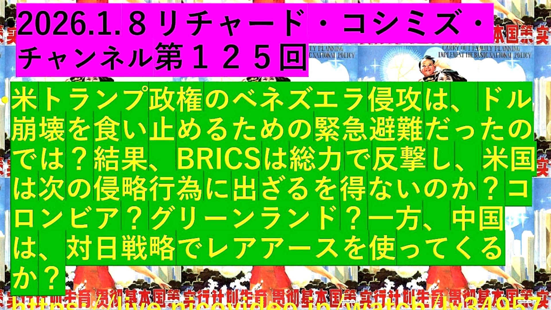 「『米トランプ政権』の『ベネズエラ侵攻』は、『ドル崩壊』を『食い止める』ための『緊急避難』だったのでは?『結果』、『BRICS』は総力で『反撃』し、『米国』は次の『侵略行為』に出ざるを得ないのか?『コロンビア』?『グリーンランド』?一方、『中国』は、『対日戦略』で『レアアース』を使ってくるか?」 |