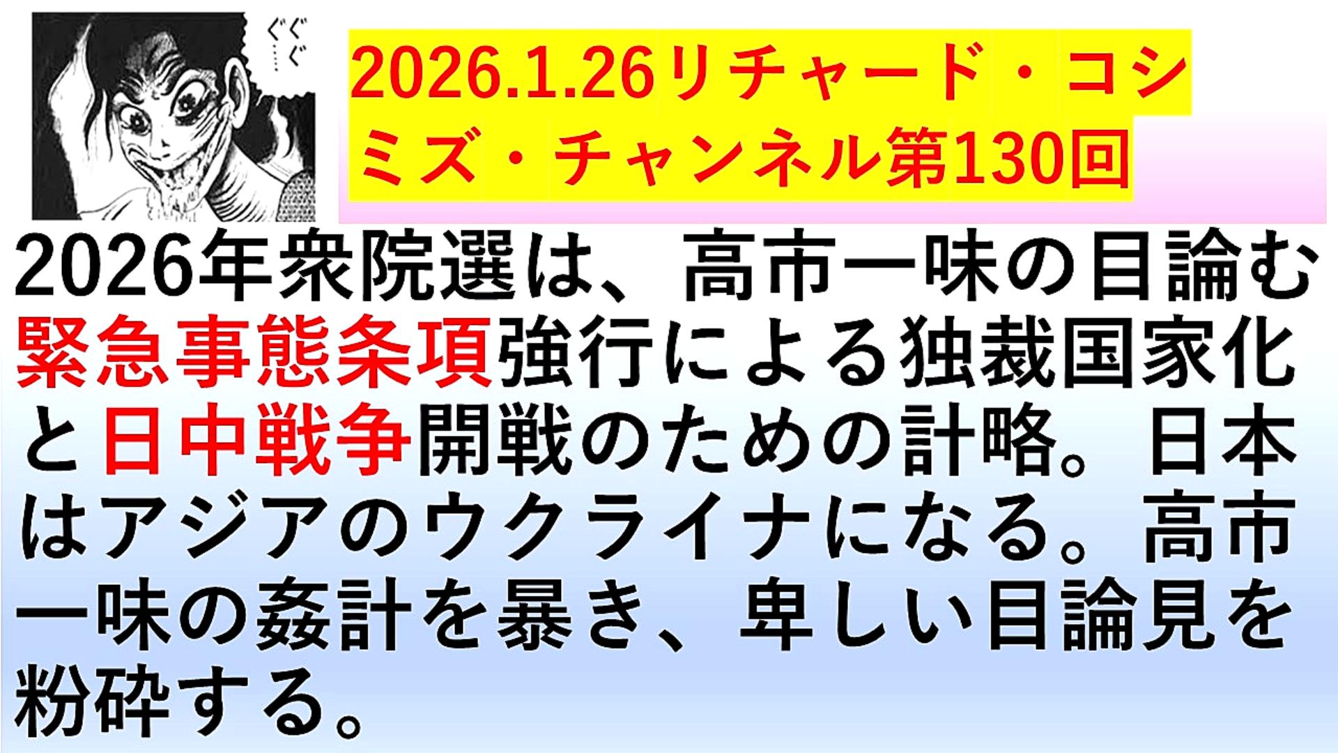 「『2026年衆院選』は、『高市早苗一味』の目論む『緊急事態条項強行』による『独裁国家化』と『日中戦争開戦』のための『計略』。『日本』は『アジア』の『ウクライナ』になる。『高市早苗一味』の『姦計』を『暴き』、卑しい『目論見』を『粉砕』する」 |