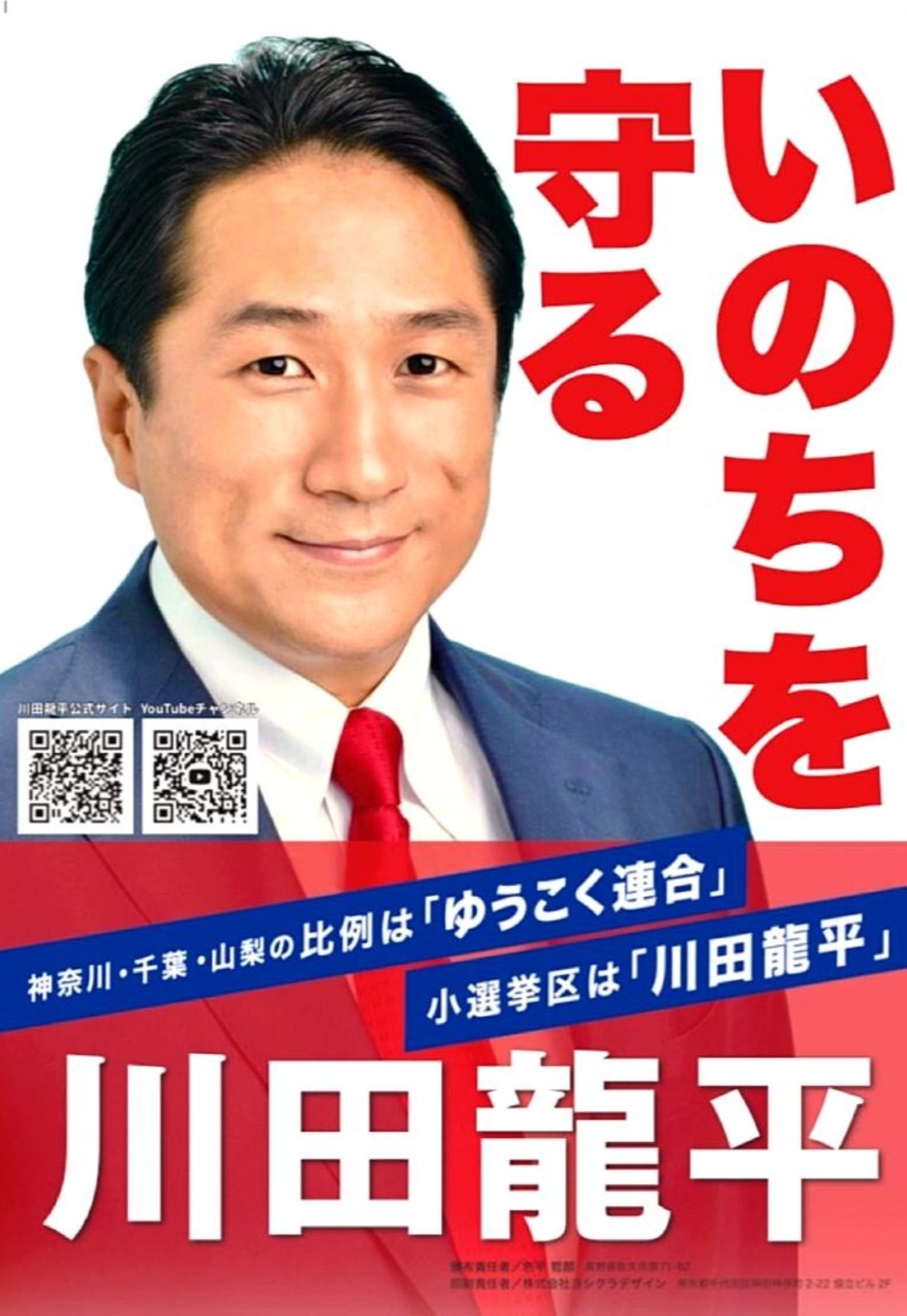「『川田龍平』、『衆議院選挙』に『出陣』!今回、『小選挙区千葉7区⦅流山市・野田市⦆』&『南関東比例ブロック』とも『勝機』あり!『大政党』の『柵』に囚われず、『志』を『同じく』する『同志』とともに、『自由闊達』に『戦う』!『原口一博』も『吉野敏明』も『奥野卓志』も『決起』した!」 |